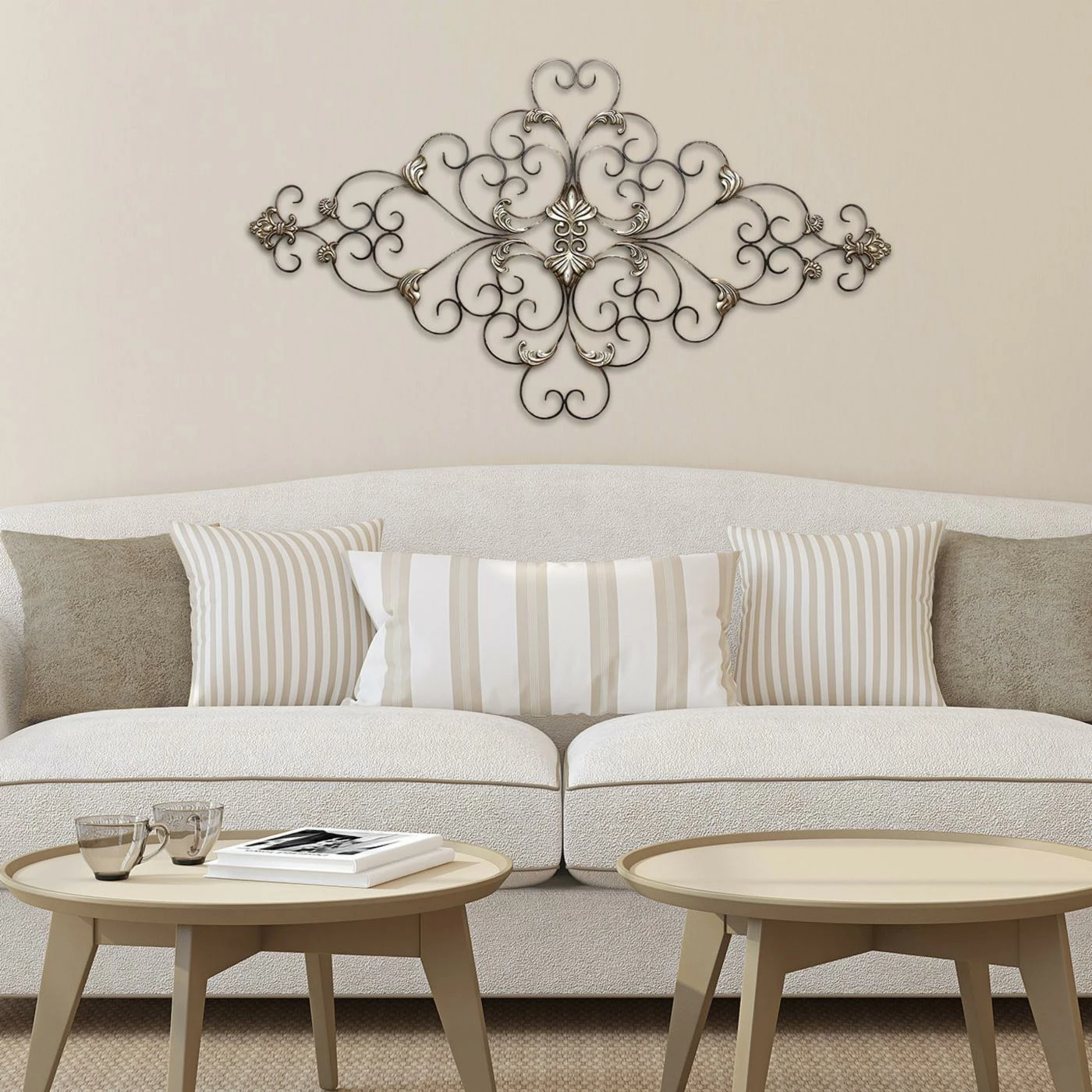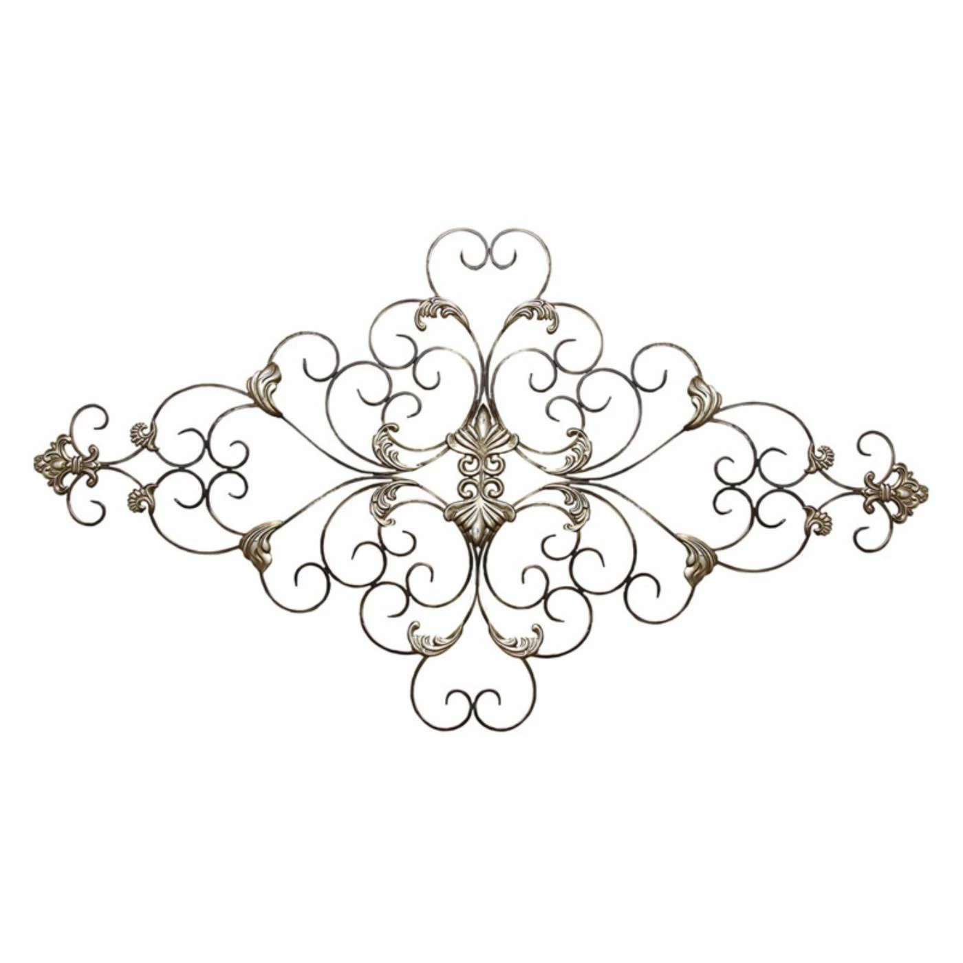 The Stratton Home Decor Ornate Scroll Wall Sculpture is truly ornate in every sense of the word. Beautiful scrollwork and damask shapes blend together, finished in a shimmering champagne color that creates a visually stunning work of art for your home.