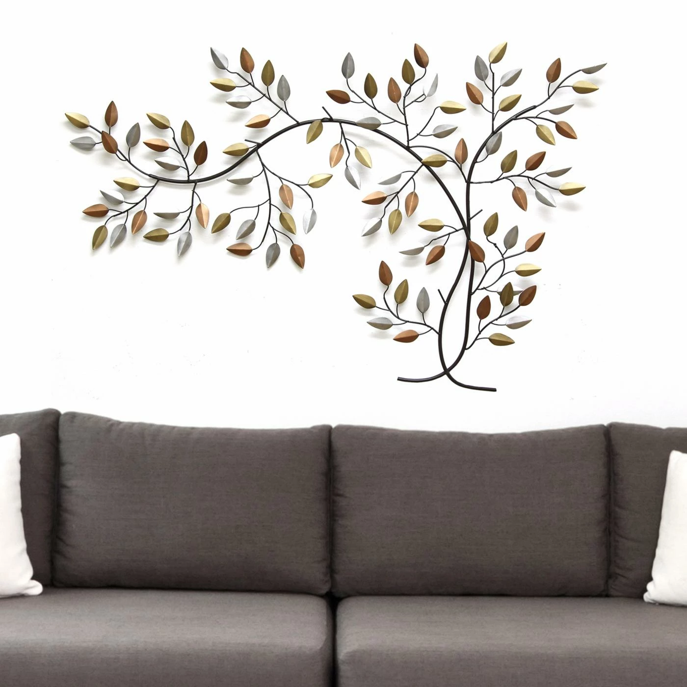The Stratton Home Decor Tree Branch Wall Sculpture enhances your home with nature’s beauty using elegantly sculpted branches and leaves crafted of metal. The silver, gold, and bronze metallic colors add a shimmering effect to this beautiful artwork that gives it a feeling of the changing seasons approaching.