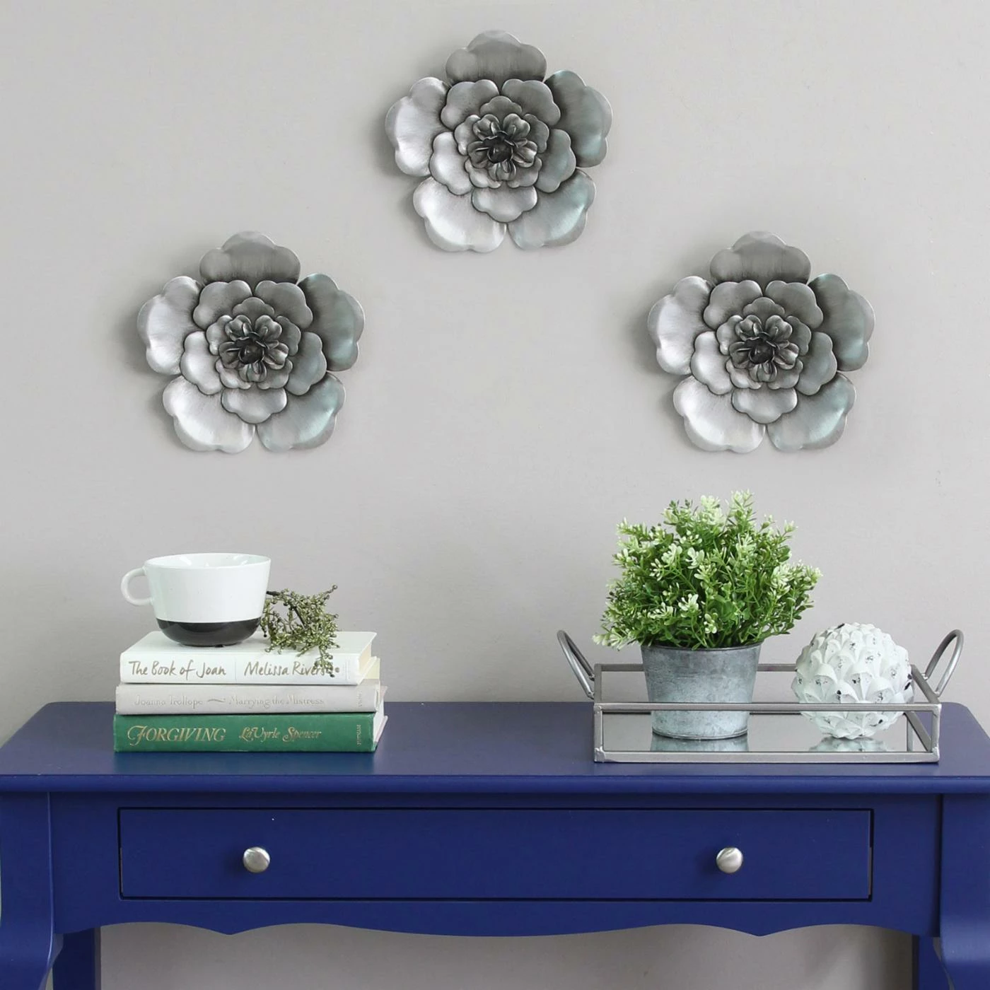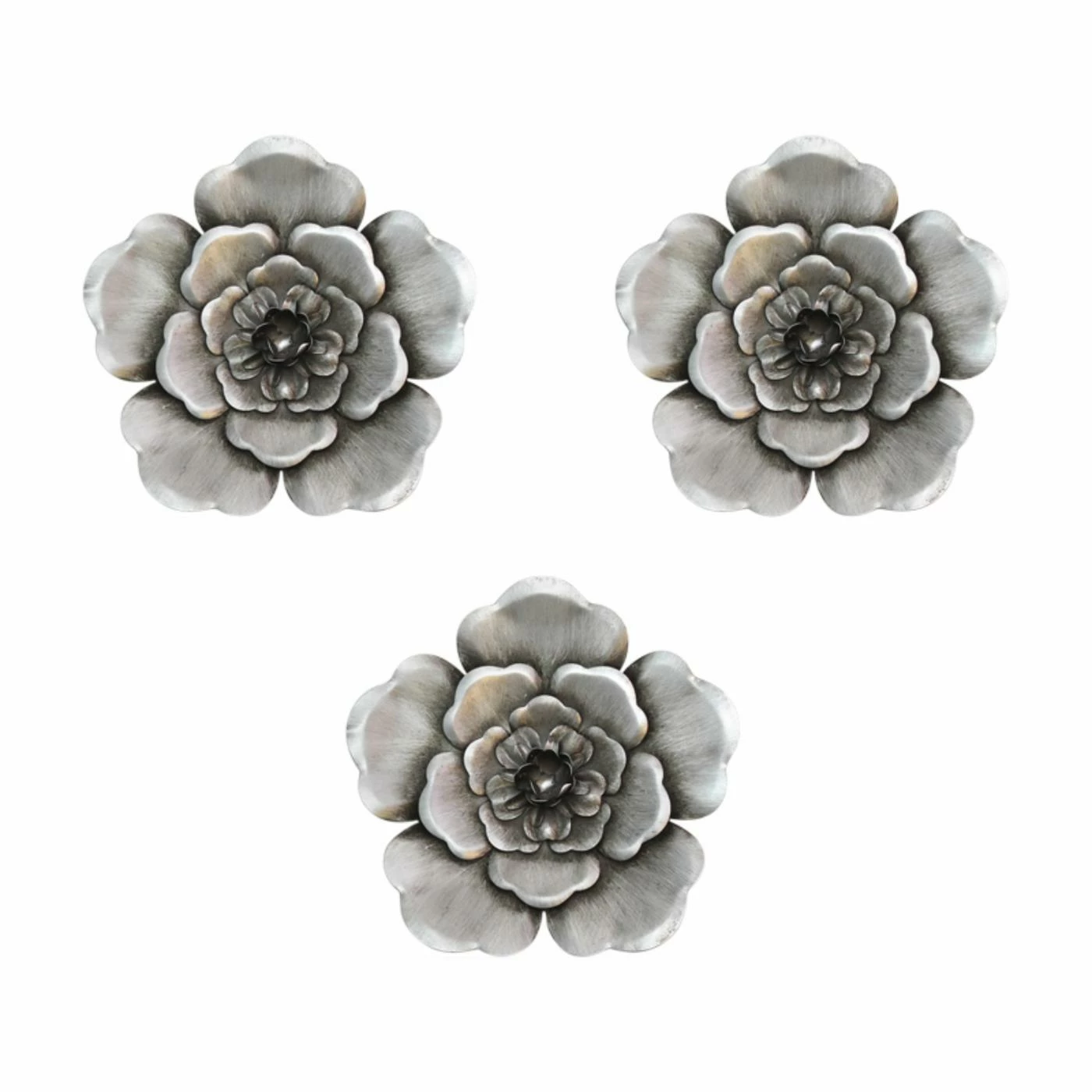 Artfully crafted from metal and painted in a gleaming silver, the Stratton Home Decor Silver Metal Flower Wall Sculpture – Set of 3 bring natural beauty to your living space. This set can be arranged in a variety of ways and can be used to a build a striking wall of art.