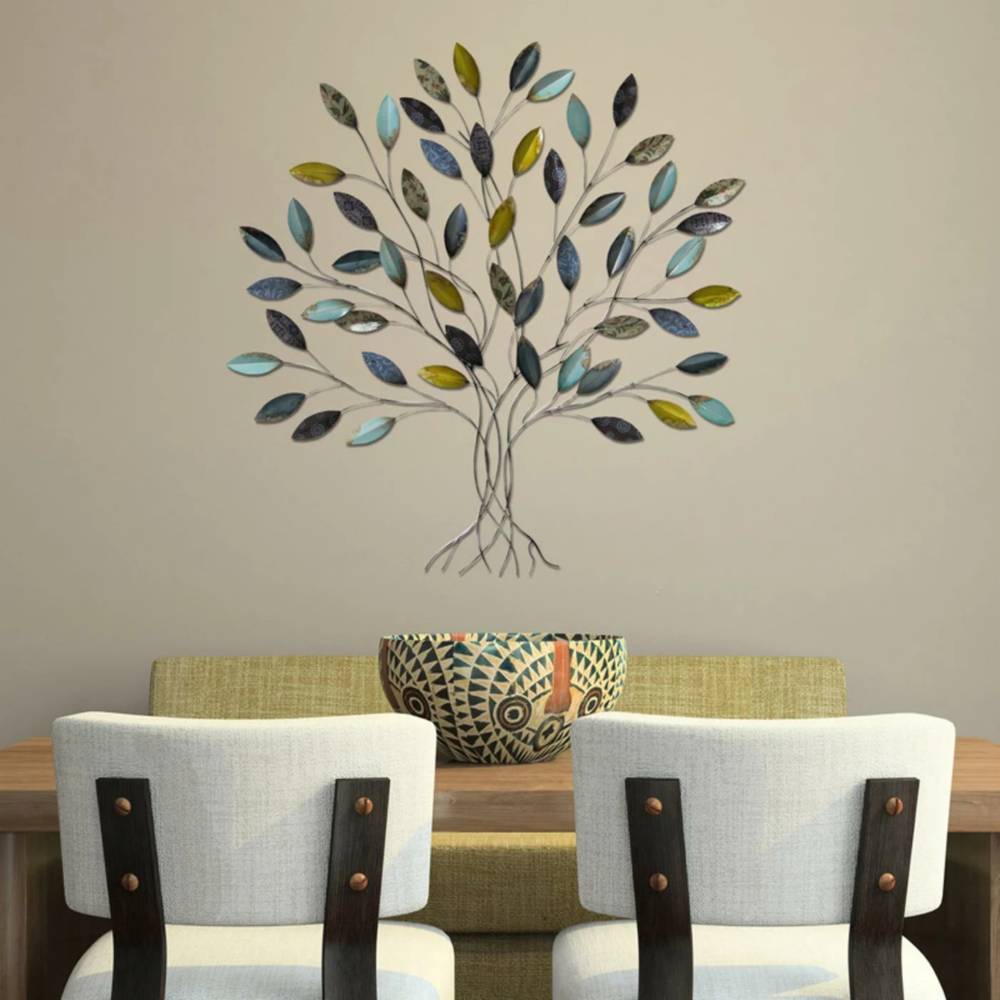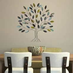 The Stratton Home Decor Tree Wall Sculpture boasts bursts of bright color and charming leaves with its whimsical sculpted tree shape. This metal wall art is enhanced with hand painted multicolored finishes and patterns on each leaf that add a bright look and endless whimsy to your favorite space.