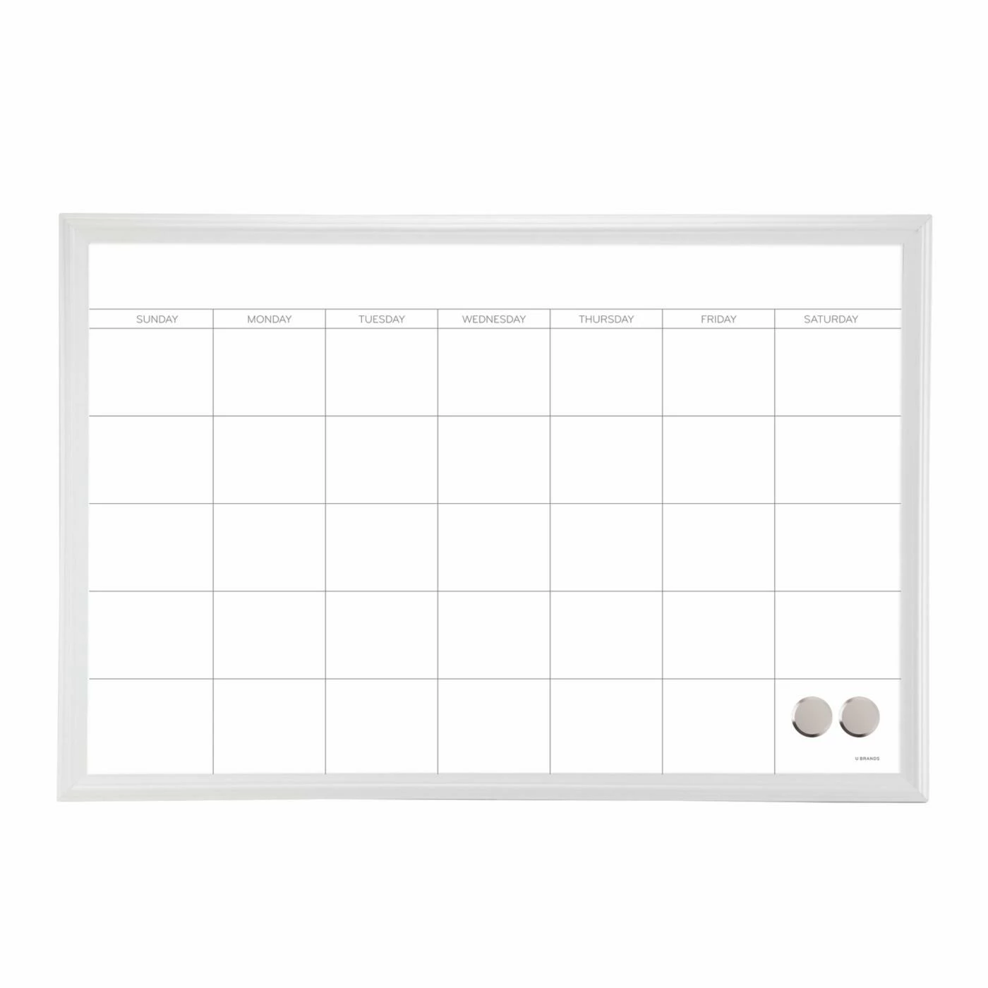 Who knew that using a calendar could be so fun and functional? The U Brands Magnetic White Wood Dry Erase Calendar Board allows for just that. Preprinted with a standard calendar outline, this board is then customizable to suit your needs. Simply add the month and day, along with any notes, artwork, or other designs that you like. The white painted steel surface is fully magnetic, so you can add any magnets you like to attach notes, pictures, reminders, and more. Compatible with any dry erase markers, and easily cleaned with any dry erase spray or wet erase wipes, this calendar will allow you to embrace your inner artist while keeping track of important moments. Included hardware and instructions allow you to mount this board horizontally or vertically to suit any space. Thick insulation creates a rigid writing surface and provides a sturdy board that will last through years of creative and functional use.
