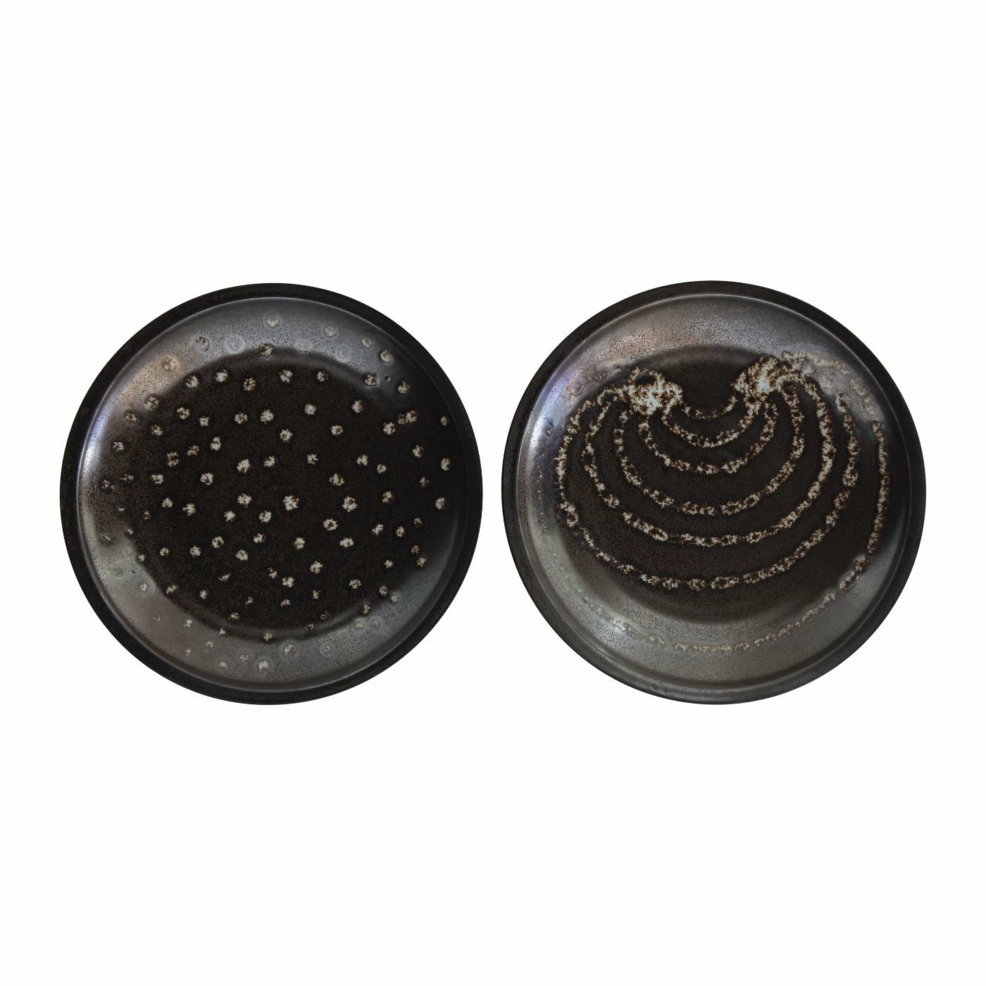 On the shelf with rustic accents or on the wall in a modern space, the 3R Studios Small Black Decorative Terracotta Wall Plate – Set of 2 is a simple way to add unique accents to any room. Each plate features a different primitive, abstract design in white on a brown finish. This pair of terracotta plates is for decorative use only and are not food safe.