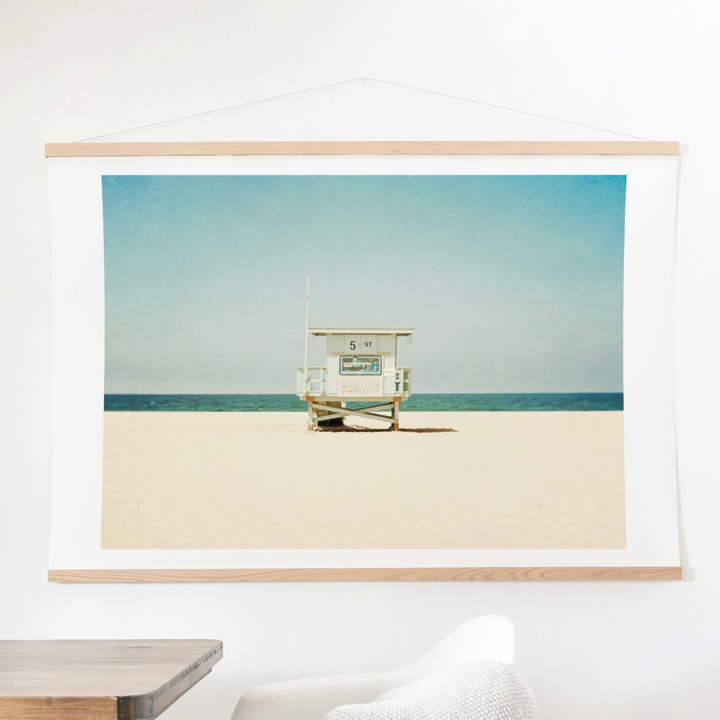 A great choice for injecting a dose of color into a minimalist setting, the Deny Designs 5Th Street Wall Tapestry features a quiet beach scene with a single structure at the center. This image by Bree Madden is printed with archival inks on pure cotton fiber paper that’s also of archival quality. It’s presented with wooden art hangers and comes with the necessary hanging hardware.