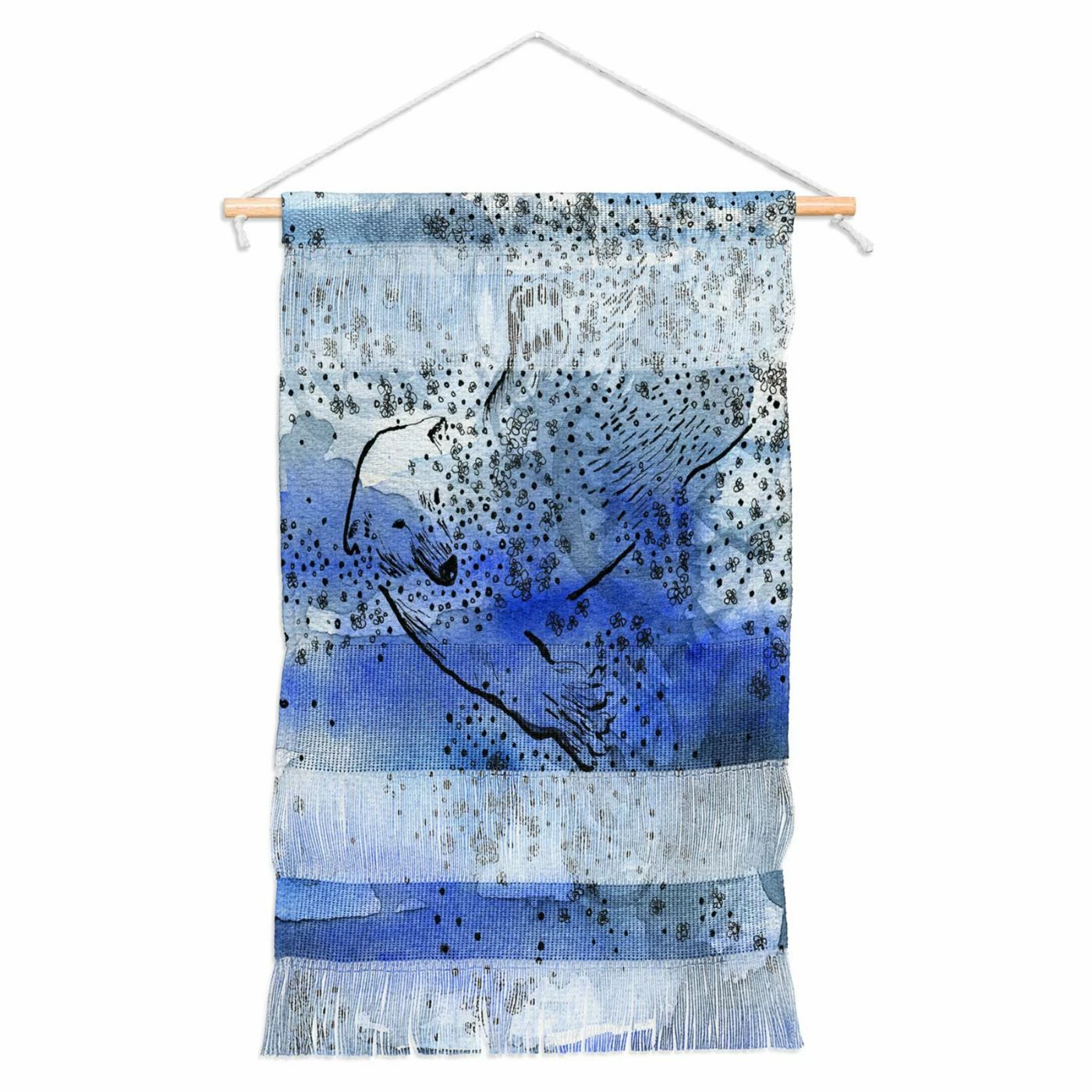Swirls of blue and bubbles surround a swimming polar bear in the whimsical Deny Designs Bear Happiness Wall Hanging. Carefully woven from durable polyester yarns, this wall hanging features rustic texture. It is elegantly suspended from a simple wooden dowel.
