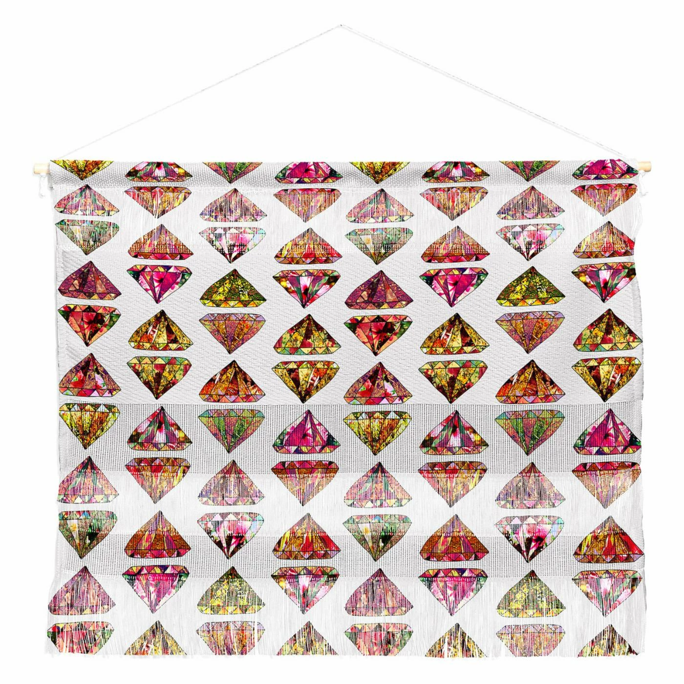 Make a cheerful statement in your home with the Deny Designs Bianca Green These Diamonds Are Forever Wall Scroll. This diamond pattern on polyester tapestry is finished with fringe details.