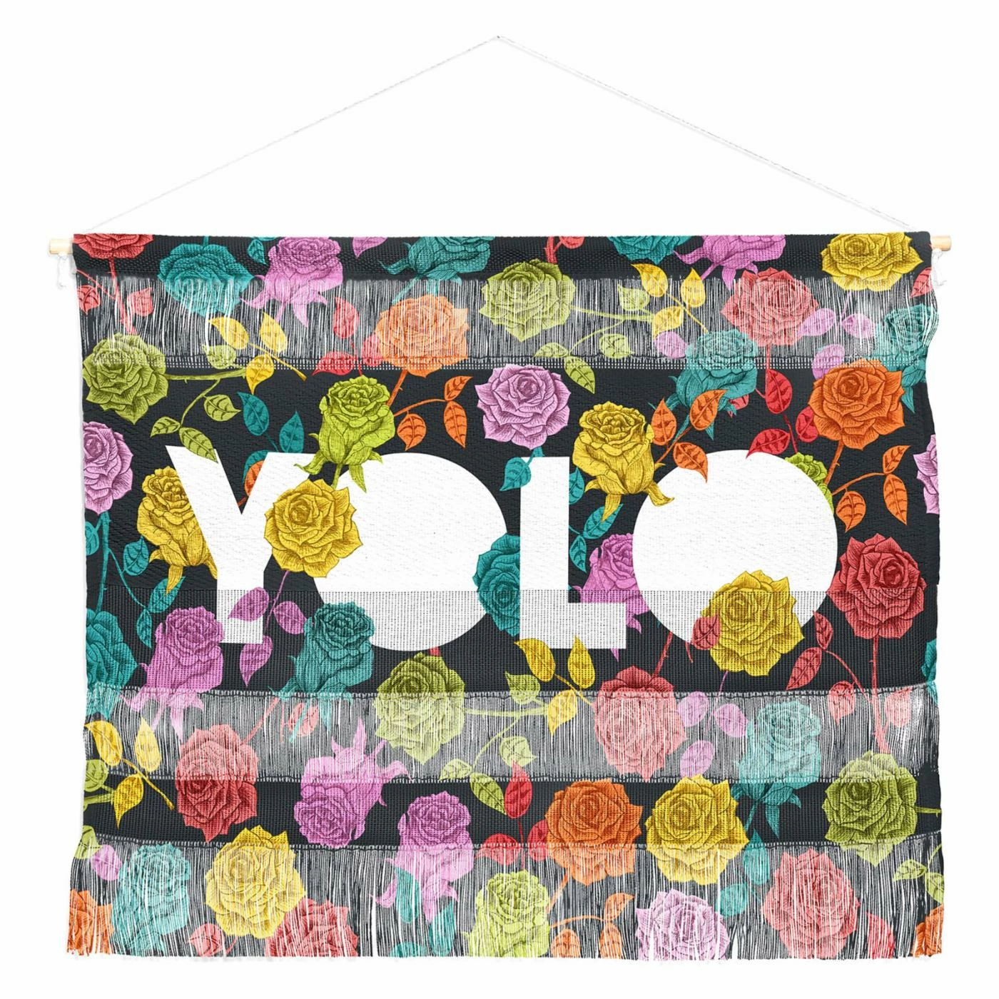 Add dimension and color to your wall and remember to live in the here and now with the Deny Designs Bianca Green Yolo Wall Scroll. This ready-to-hang tapestry boasts woven polyester fibers and fringed stripes for a chic finishing touch.