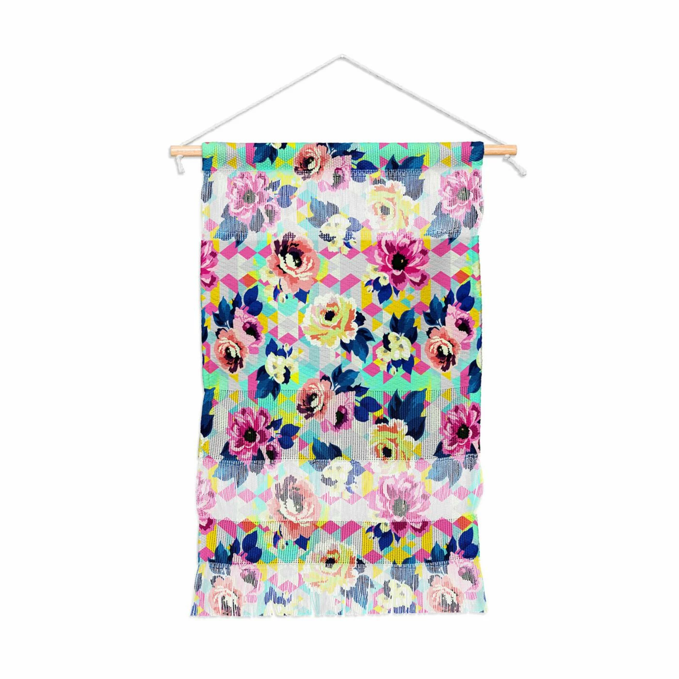 Vibrant pink blossoms are accented by a colorful geometric pattern on the Deny Designs Blooms Along the Geometry Portrait Wall Hanging, creating a look that’s brimming with personality. This wall hanging is crafted from woven polyester fibers in a tapestry-style design. This wall hanging is easy to display with a rod and hanging cord at the top.