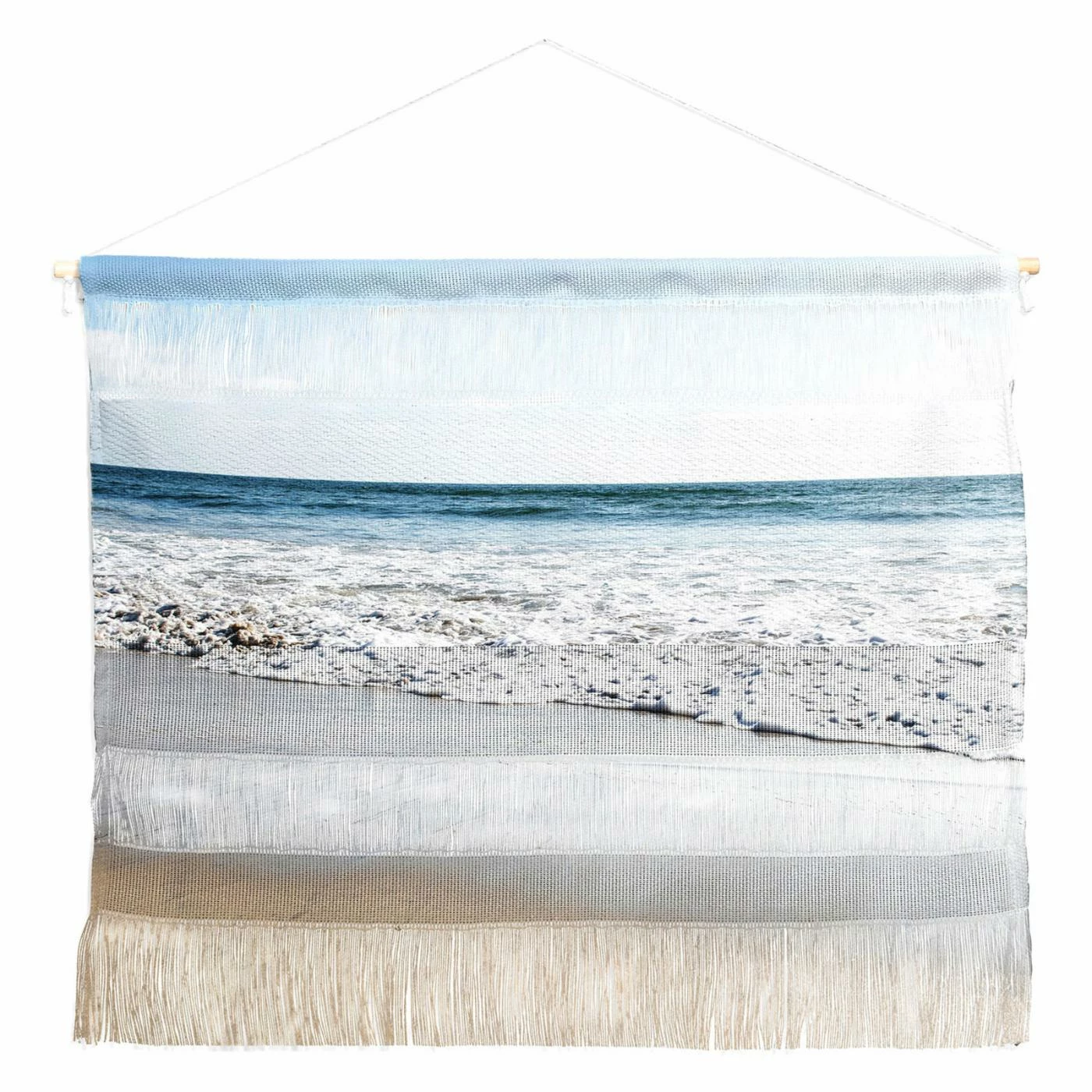 Bring the incredible beauty of the beach into your home when you showcase the Deny Designs Bree Madden Sea Sky Wall Scroll. This coastal tapestry arrives fully assembled and boasts a wide band of fringe at the bottom.