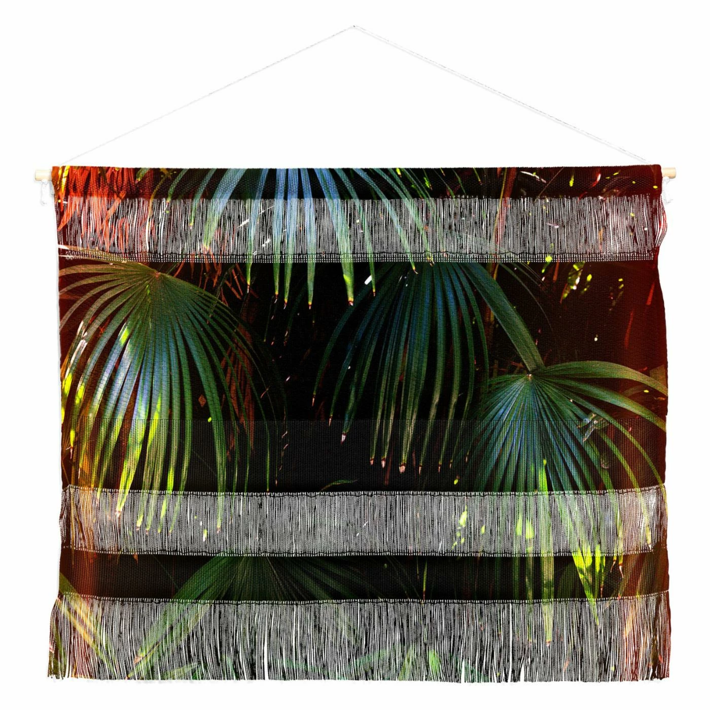 Bring the lush feeling of the tropics into your home with the Deny Designs Catherine McDonald Hot Tropic Wall Scroll. This woven tapestry boasts deep color tones and dimensional fringe details.