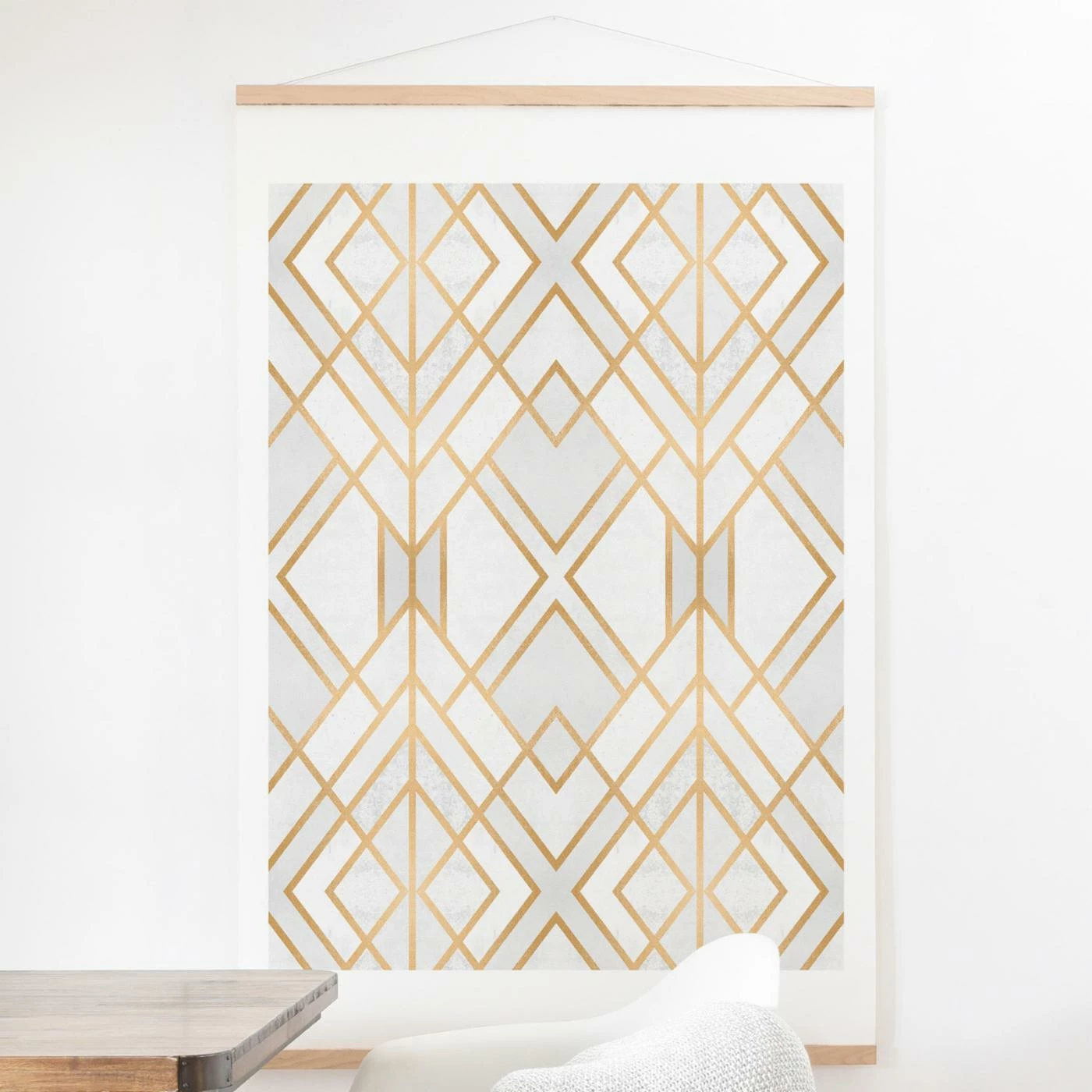 Geometric style lines enhance the sophisticated look of the Deny Designs Golden Geo Wall Scroll. This gold and white print uses archival inks to protect the design from fading over time.