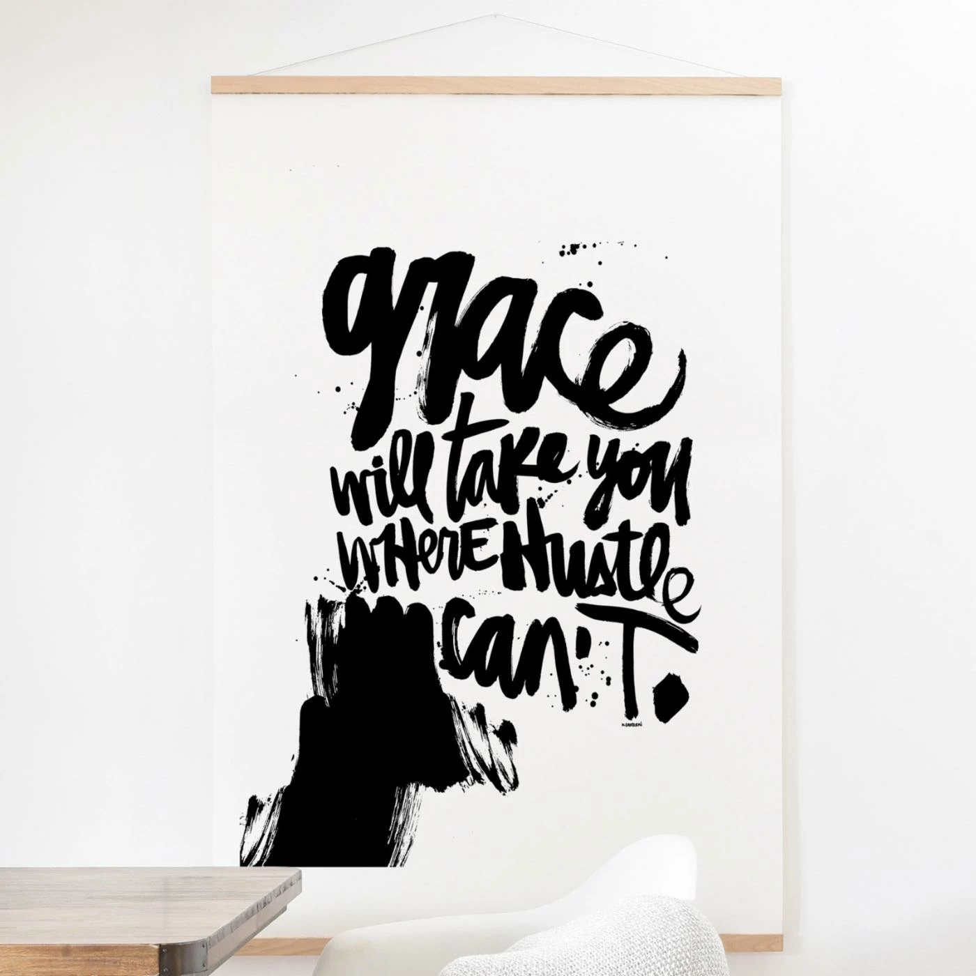 The bold, contemporary design of the Deny Designs Grace Wall Scroll highlights a word of advice. This reinforced art is backed by oak wood panels and hangs on the wall with the included hardware.