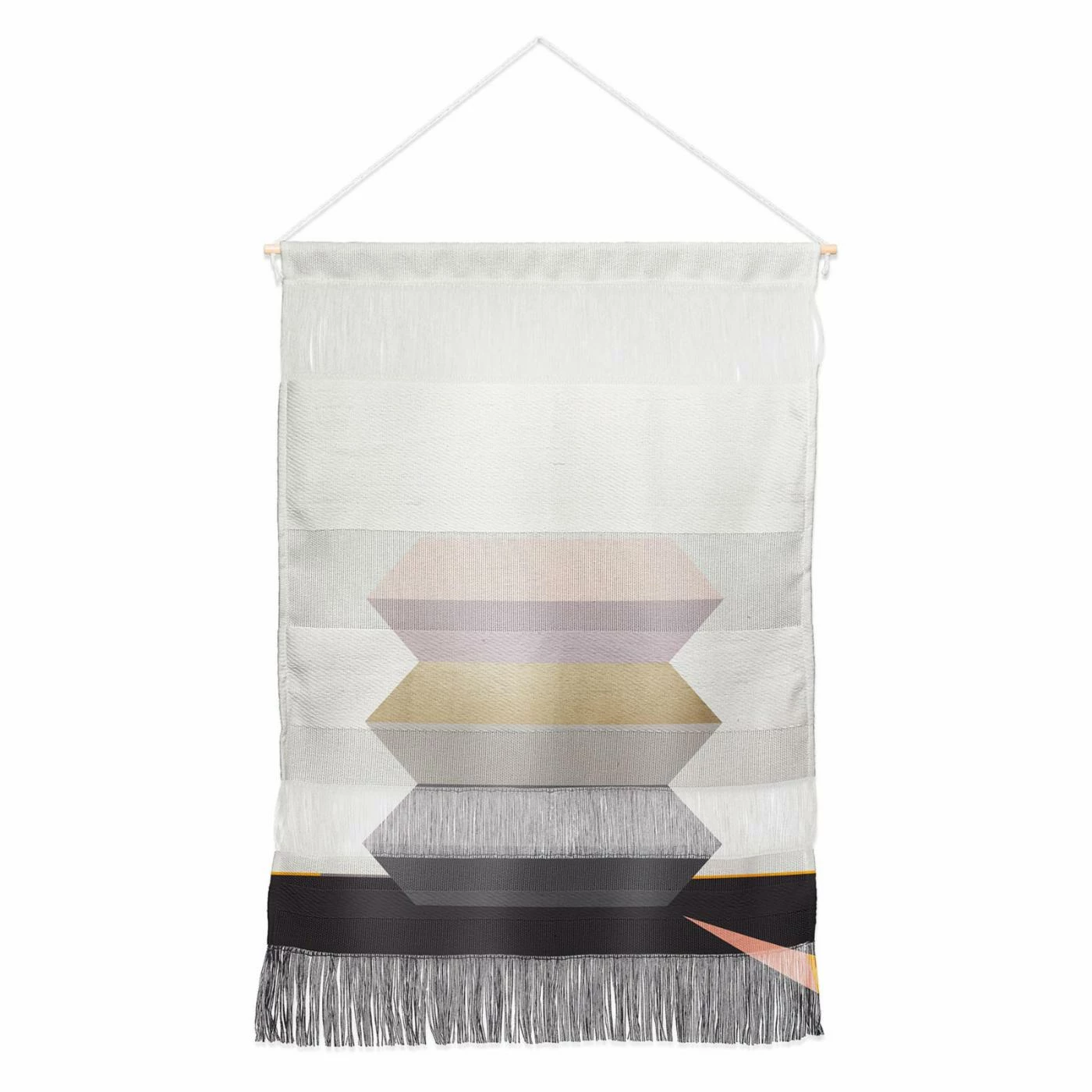 Color and modern charm collide on the Deny Designs Iveta Abolina Bloc De Couleur III Hanging Tapestry. This dimensional and textured hanging tapestry uses woven polyester to create a piece that stands out. A fringe trim and rod and rope hanging style serve as the finishing touches to this artwork.