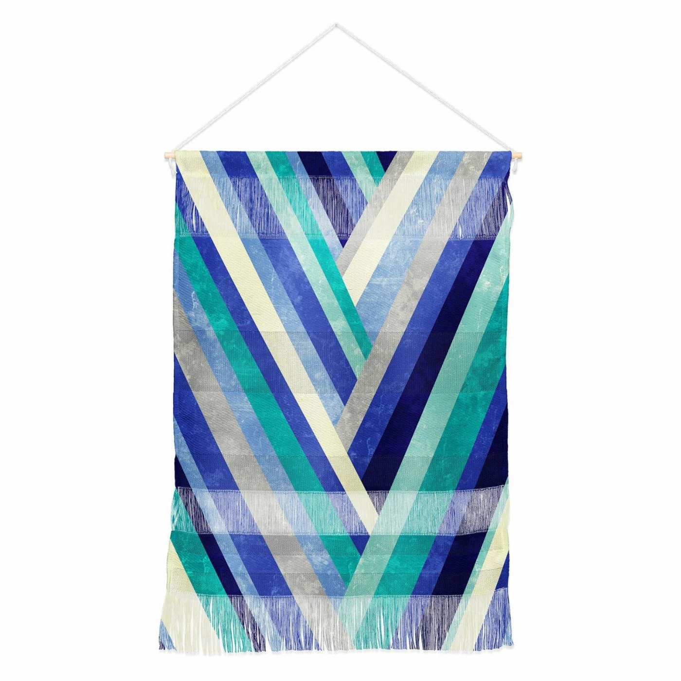 Embrace color by hanging the Deny Designs Jacqueline Maldonado Marble Blue Hanging Tapestry on your walls. Blue, gray, and teal intersecting lines lend modern flair to this woven polyester piece. Hang it easily on your wall thanks to a wood rod and rope design.