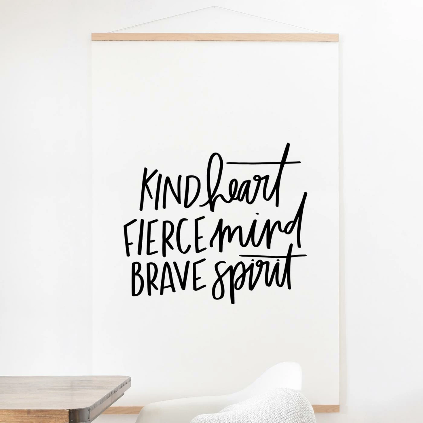 Inspire everyone in your home by featuring the Deny Designs Kind Heart Fierce Mind Brave Spirit Wall Scroll. This black ink offers a UV-resistance that prevents fading over time.