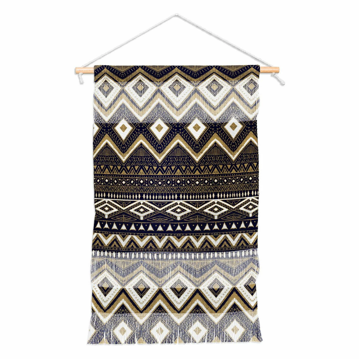 Thanks to a unique tribal pattern, the Deny Designs Marta Barragan Camarasa Mystic Tribal of Gold and Blue II Hanging Tapestry brings depth and dimension to your walls. This woven polyester hanging tapestry mounts easily to your walls with a rod and rope design.