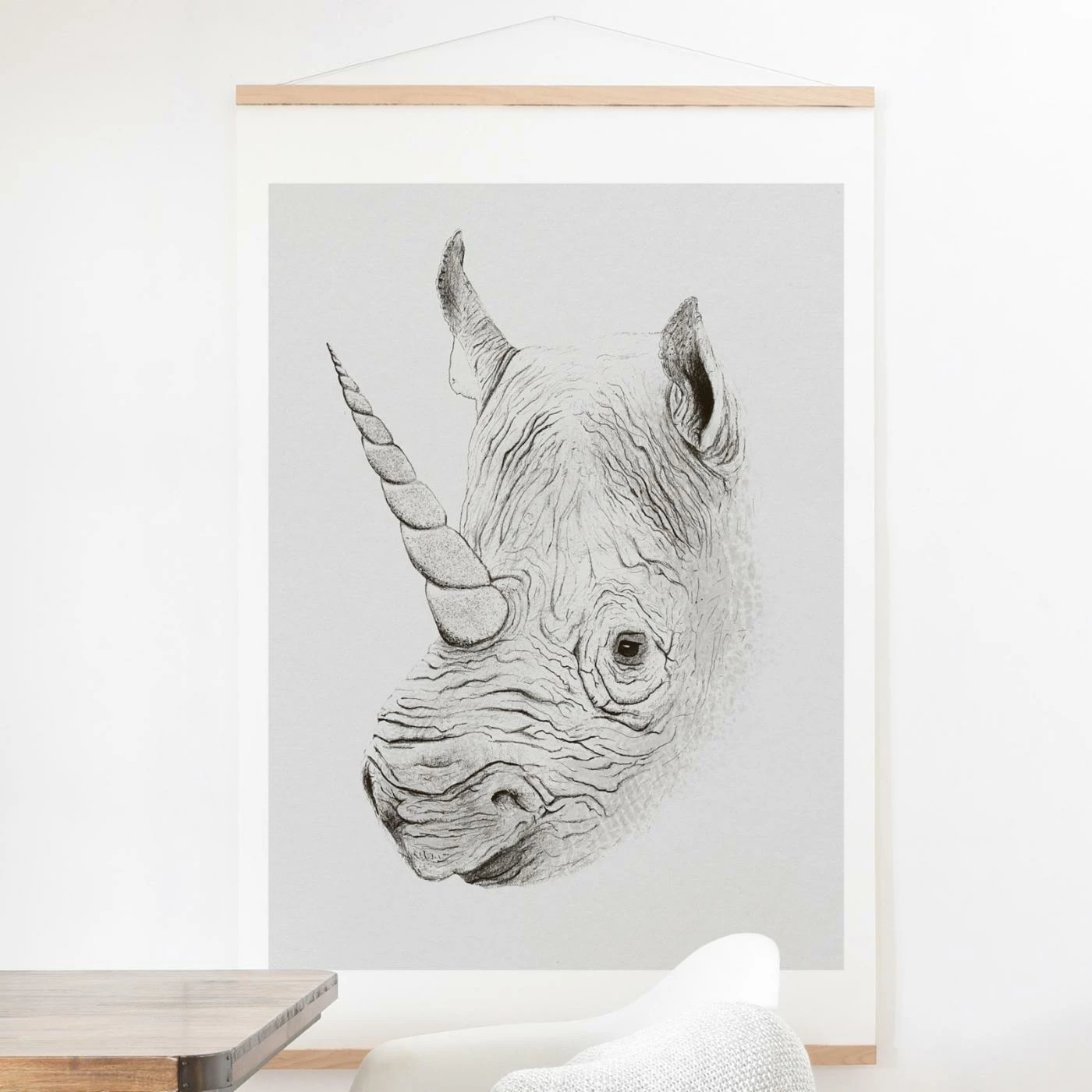 The minimalist Deny Designs Rhinoplasty Wall Scroll pays tribute to the noble rhinoceros with the addition of a delicate spiral horn. Showcase your style by hanging this sturdy, wood-backed art on the wall using the included mounting hardware.