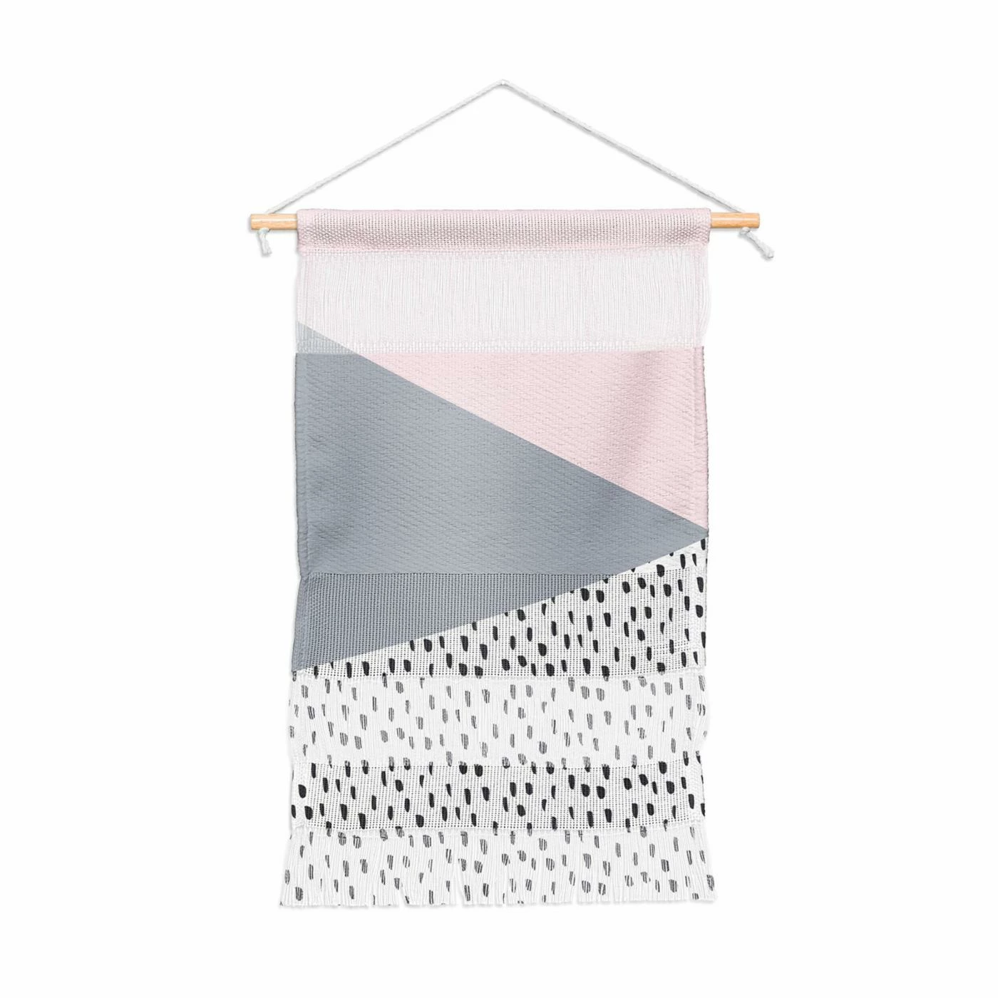 Fringe details and cut-outs lend a breezy look to the Deny Designs Scandinavian Style Collection 02 Portrait Wall Hanging. The geometric pattern of this wall hanging is printed in subtle shades of blue, pink, and white, creating a look that’s cool and inviting.