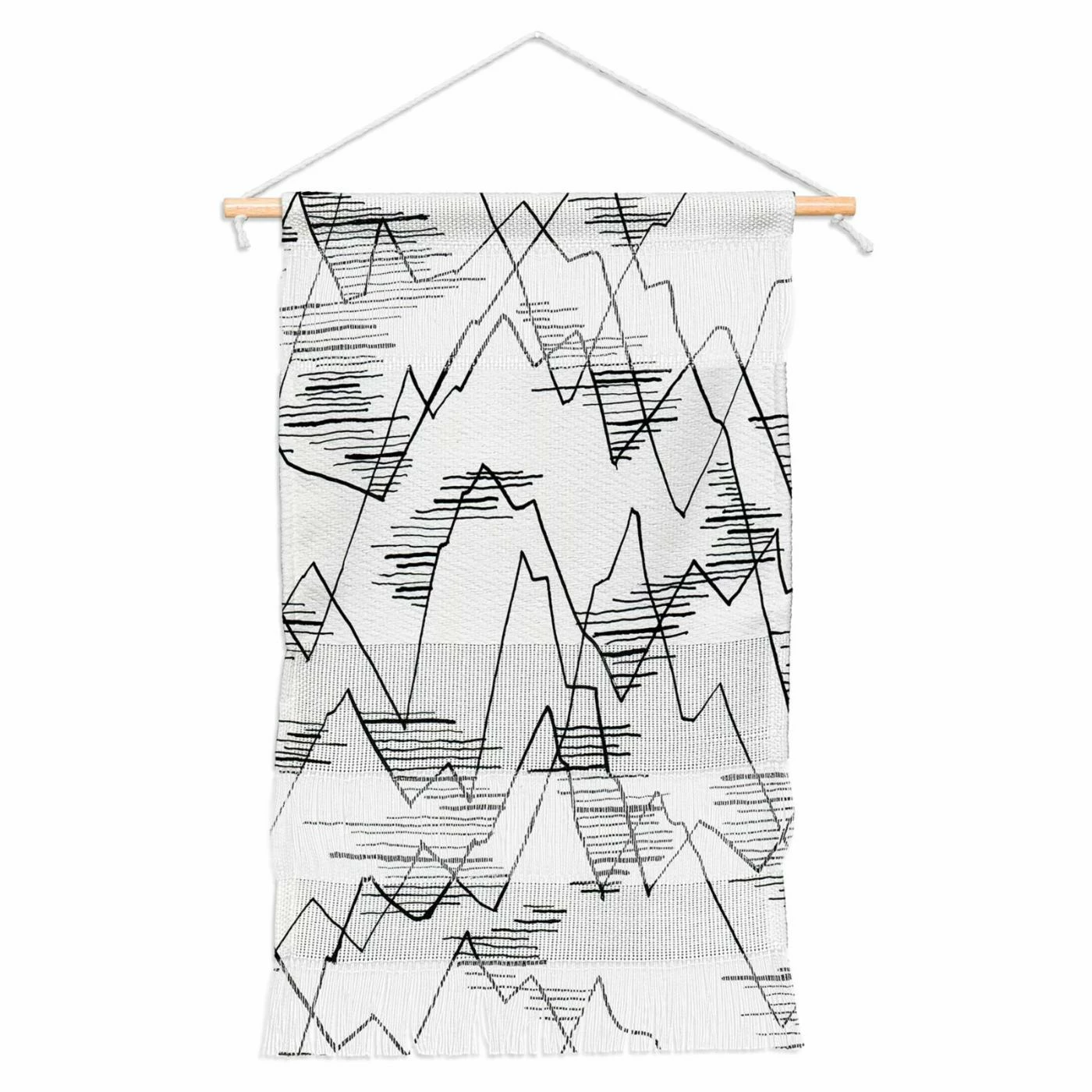 Edgy black and white line detail creates the Deny Designs The Lakes Wall Hanging peaks and valleys design. This wall art is woven from polyester yarns for a rustic textured look. It hangs simply from a minimalistic wooden dowel.