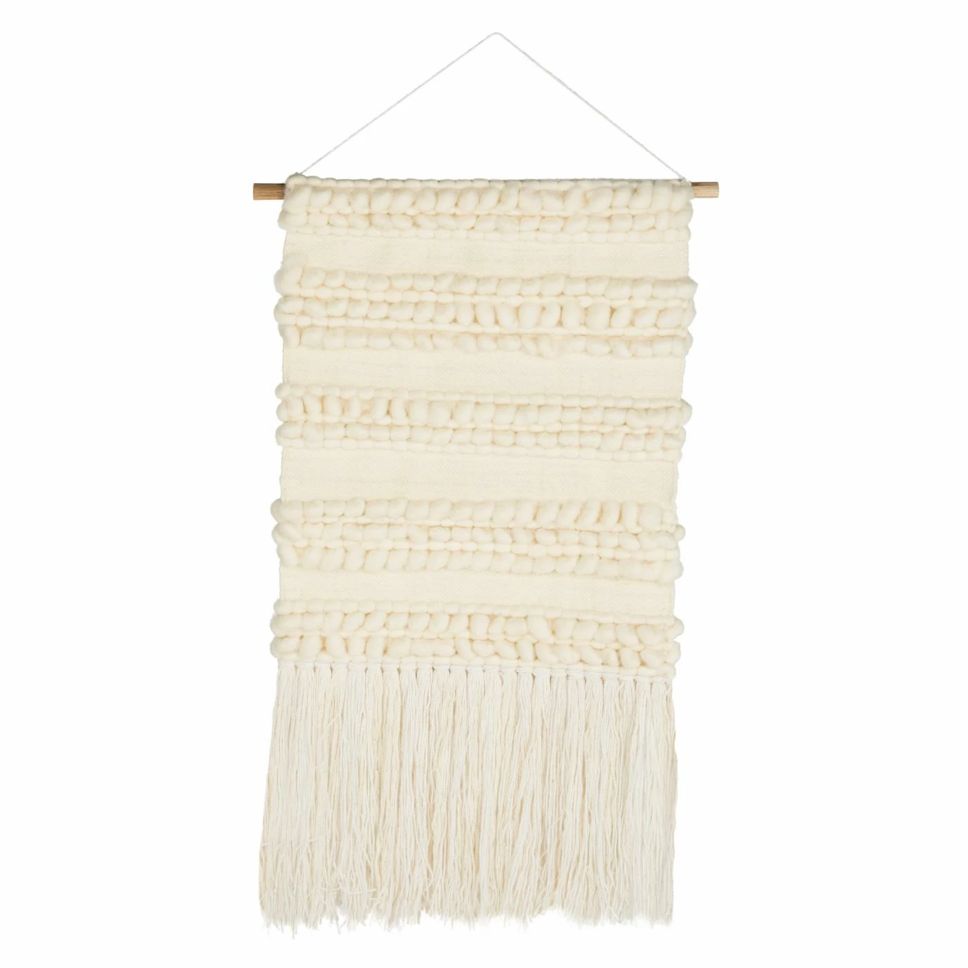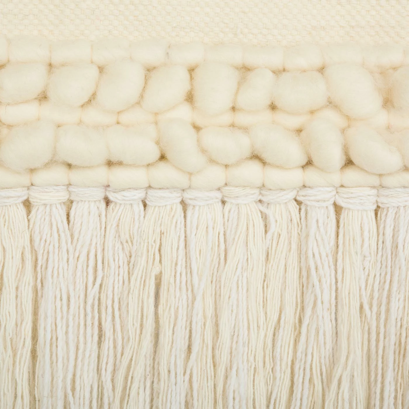 Add style to your walls without imposing on your color scheme with the Safavieh Sedona Woven White Wall Tapestry. This creation features strips of raised tufts that create an eye-catching textured-to-smooth alternating pattern. The look is enhanced by a sweeping fringe finish and the tapestry’s versatile creamy hue.