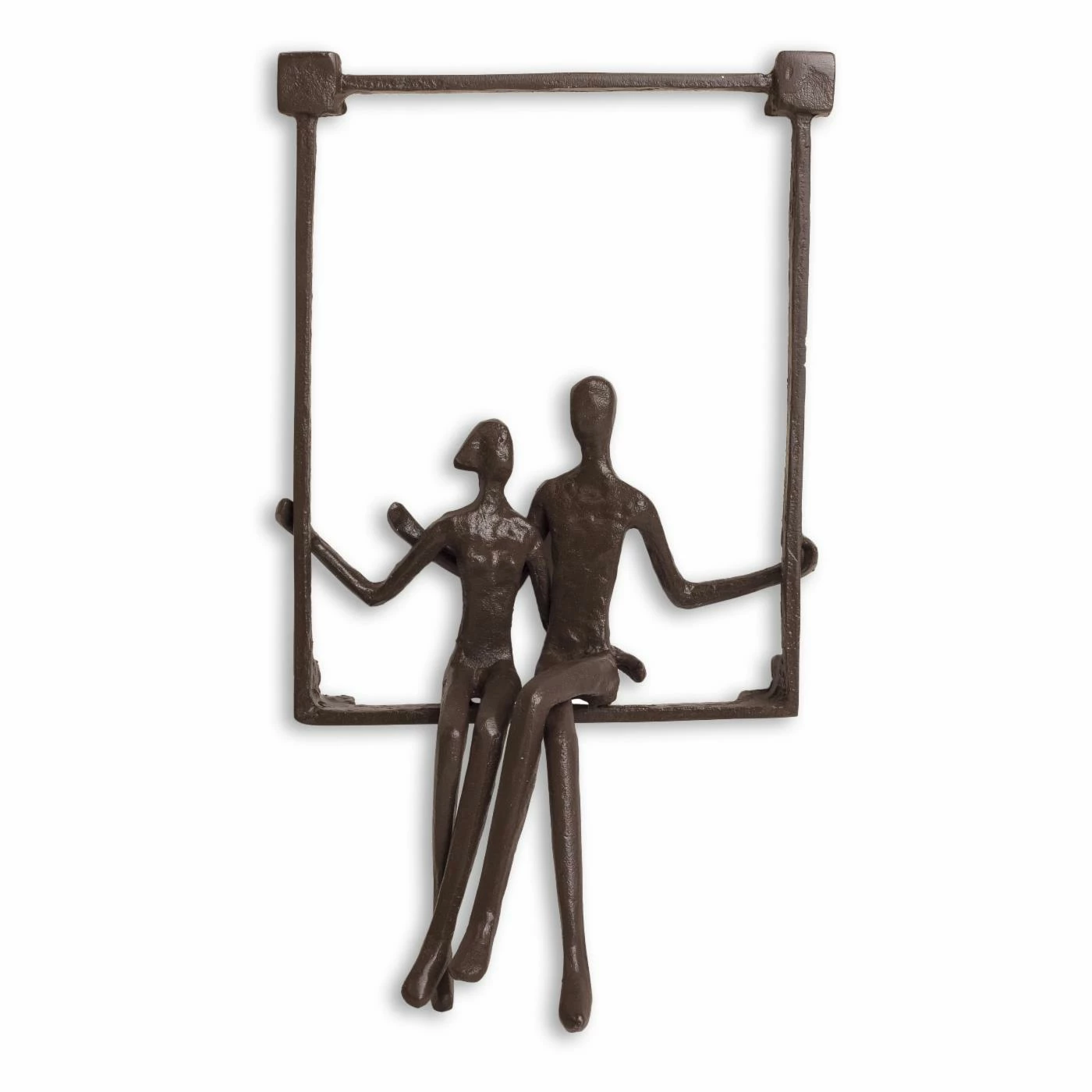 The endearing Danya B Couple Sitting on a Window Sill Wall Sculpture is a charming gift for your favorite couple. This sculpture features a cozy couple sitting on a window sill. It’s handcrafted of metal using a sand-casting method and has a dark brown finish that accentuates each detail.