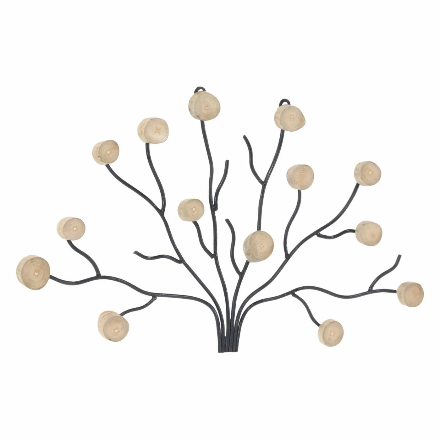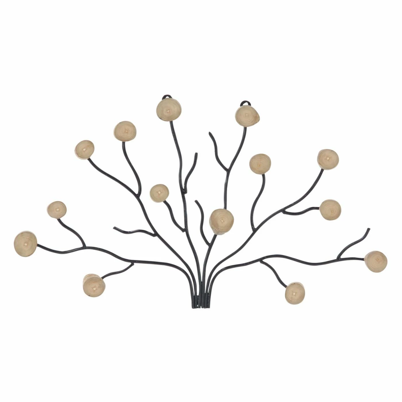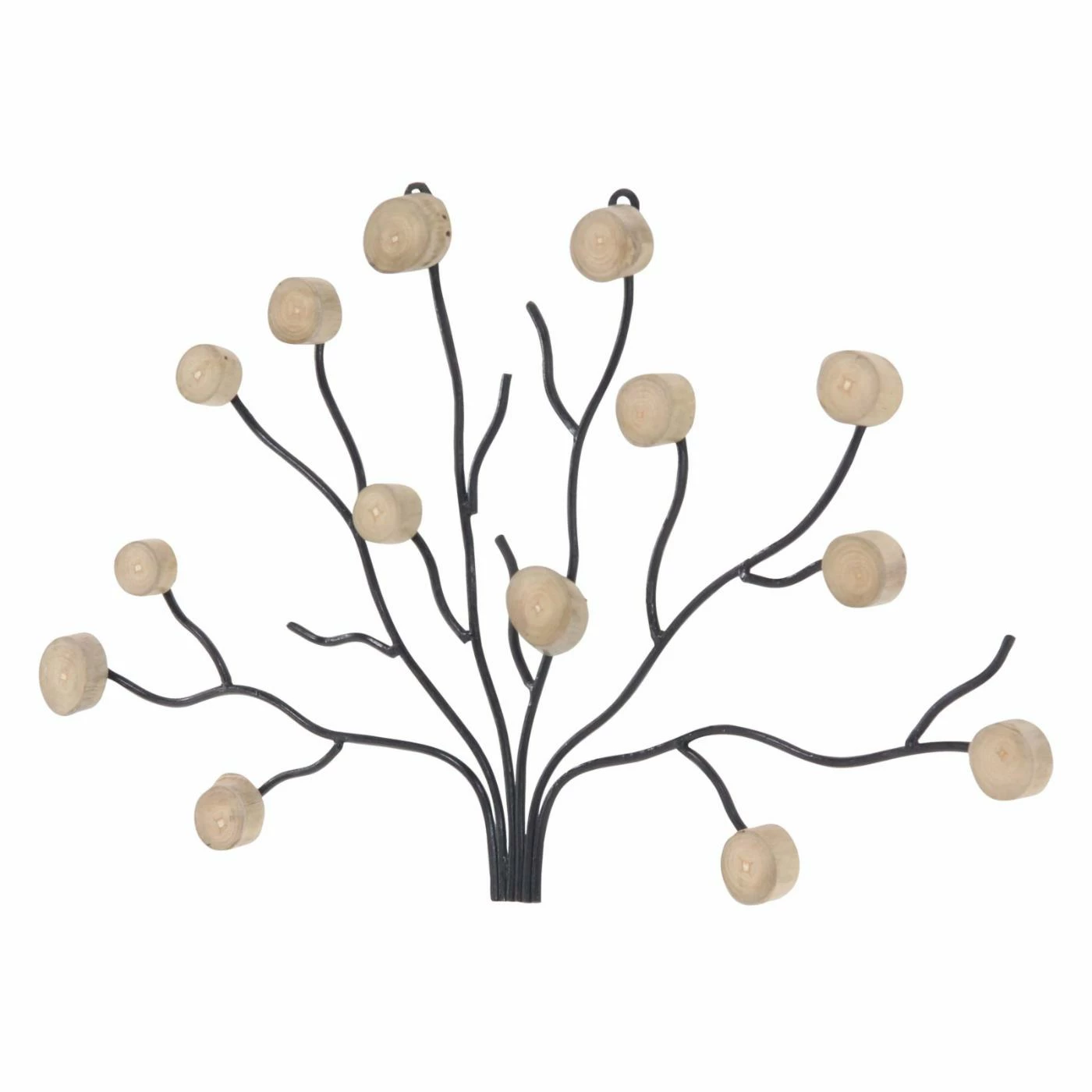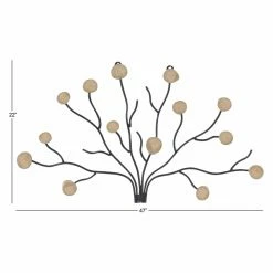 Add nature-based flair to your space with the DecMode Iron Tree Sculpture with Teak Wood Leaves Wall Decor. The wavy iron branches have a black finish that creates a contrast to the yellow leaves. This wall dΓ©cor is versatile enough to work with a wide range of color schemes, and it looks great in virtually any room.