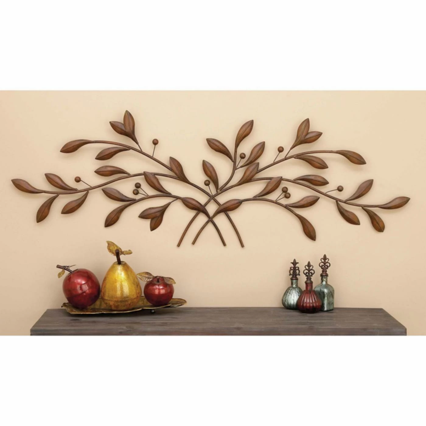 Delicate leaves and berries crafted from strong iron bring natural inspiration to your home decor with the DecMode Metal Leaves and Berries Wall Sculpture. This lovely piece is ridged to create eye-catching textural detail and bring an earthy accent to a wall or entryway. Itβs finished in warm brown hues to create a welcoming look.