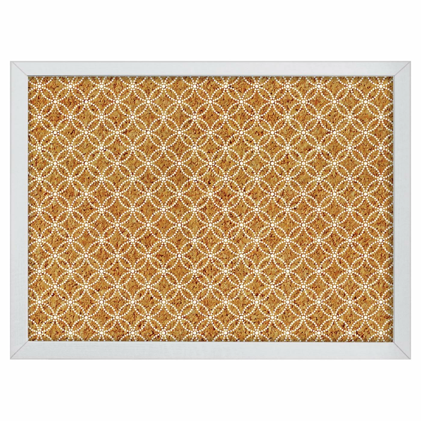 Hang your important lists, cards, and photos on the WallPops Tambour Printed Cork Board. Different from usual hanging cork boards, this piece is decorated with a circular geometric pattern to go with your dΓ©cor. Set in a white frame, it will be at home in any room in your house.