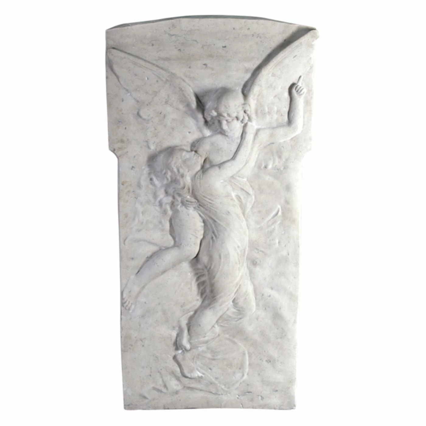 Crushed stone and bonding resin are hand-cast to form the Design Toscano Amour and Psyche Sculptural Wall Frieze and its antique-inspired design of Amour and Psyche. This elegant wall frieze is finished in a soft, natural white for an authentic look.