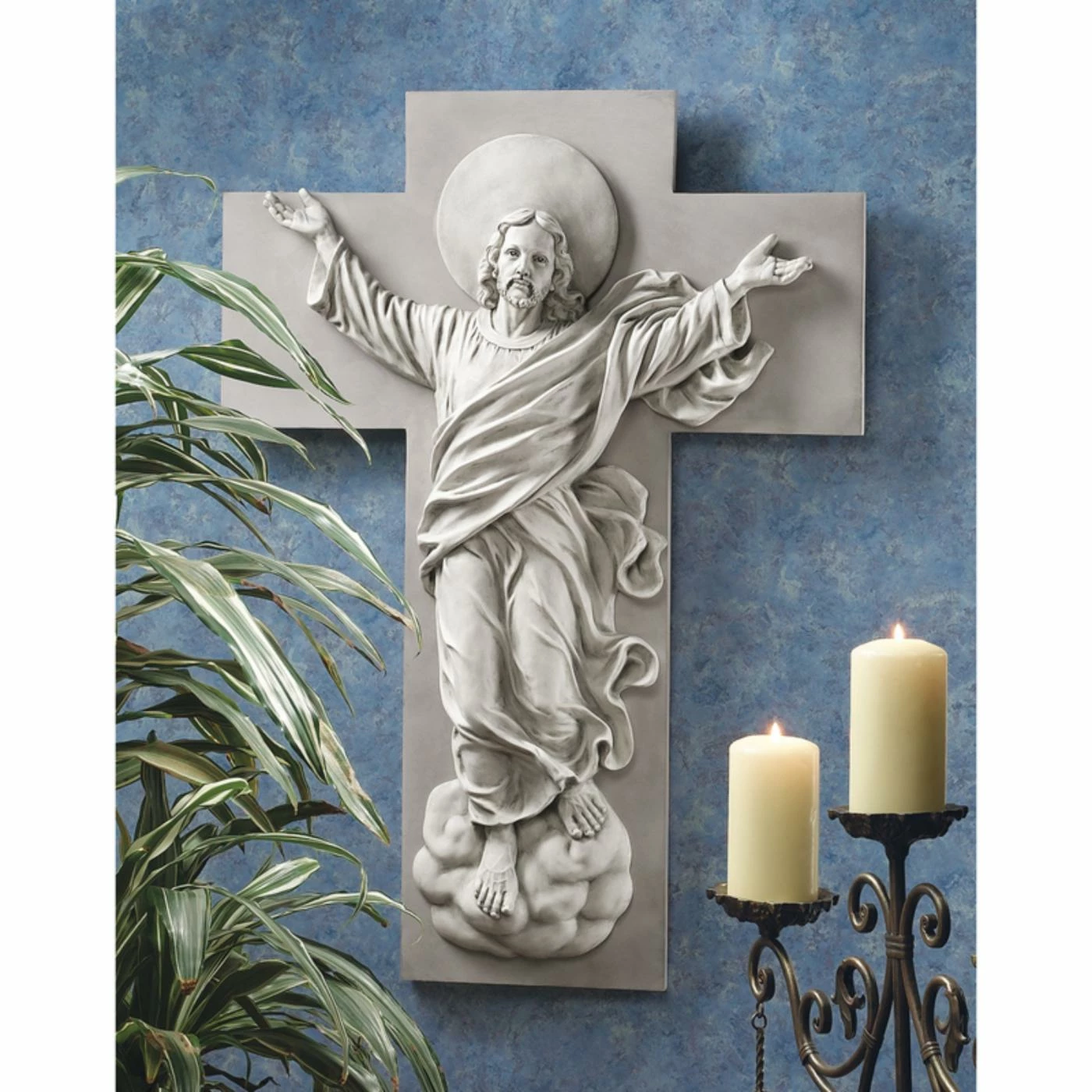 Celebrate joy and hope with the Design Toscano He is Risen Christ Ascension Wall Sculpture. At three feet tall, this durable sculpture lends impact to the subject matter of Christ being welcomed into Heaven.