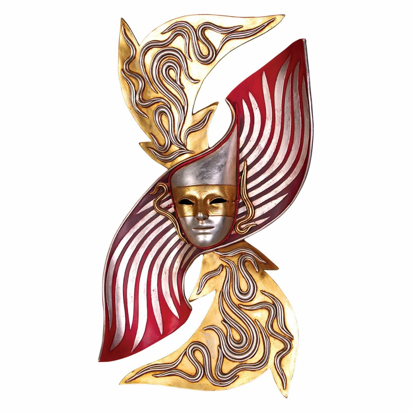 The Design Toscano Ivrea Carnivale Wall Mask Sculpture will add a dazzling note to your setting. This wall mask sculpture features quality resin construction with artisan-finished details. Painted with brilliant shades of red and gold, this sculpture will add Venetian flair to your wall.