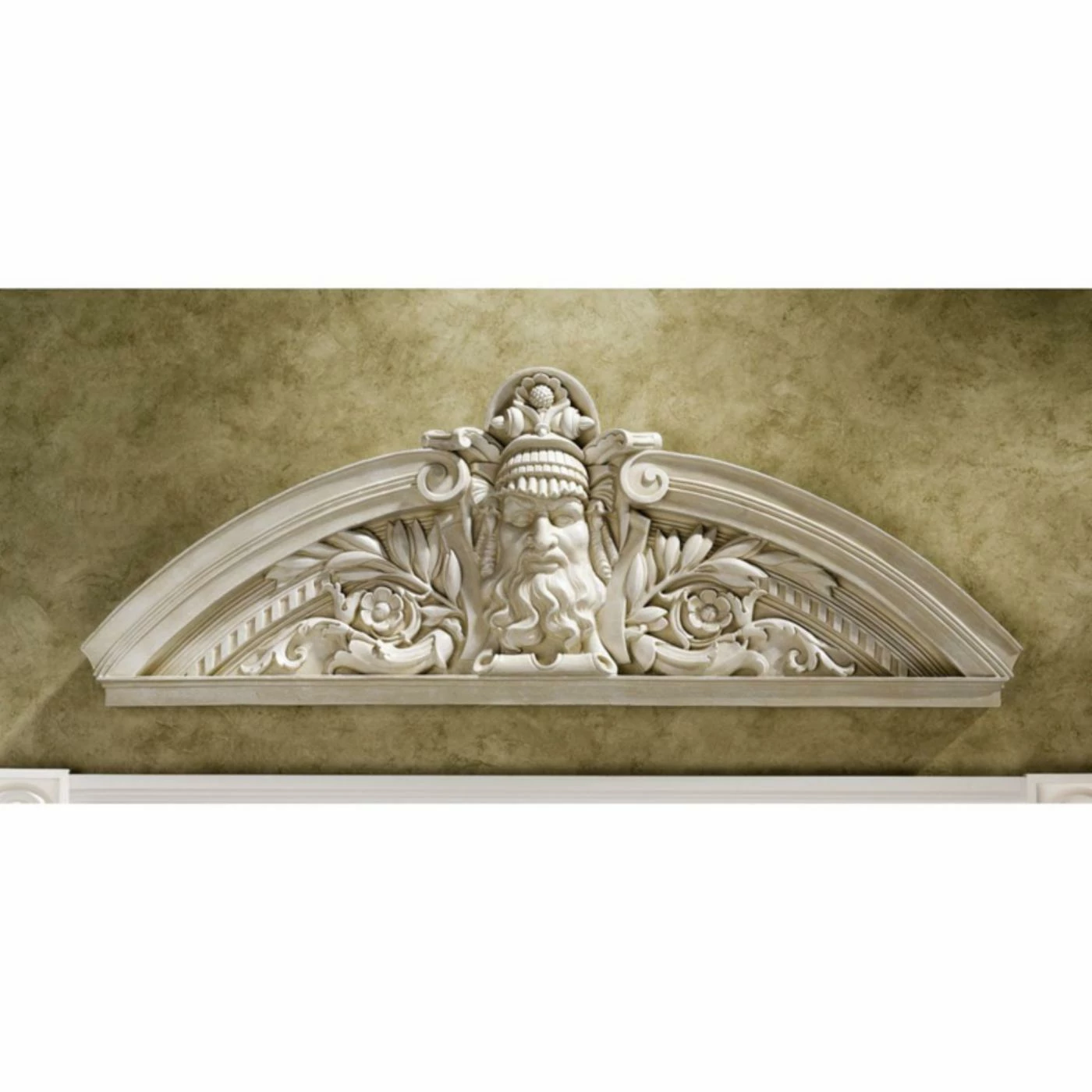 Mount the Design Toscano Prometheus The Rebel Titan Sculptural Wall Pediment – Set of 2 over doorways, windows, or artwork and give your living space the look of a Hellenistic temple. The pediments are crafted out of cast resin and then finished in faux stone, making them look as if they were rescued from an ancient ruin. Each one includes the head of Titan, the Greek God of fire, surrounded by acanthus leaves, flowers, and scrollwork.