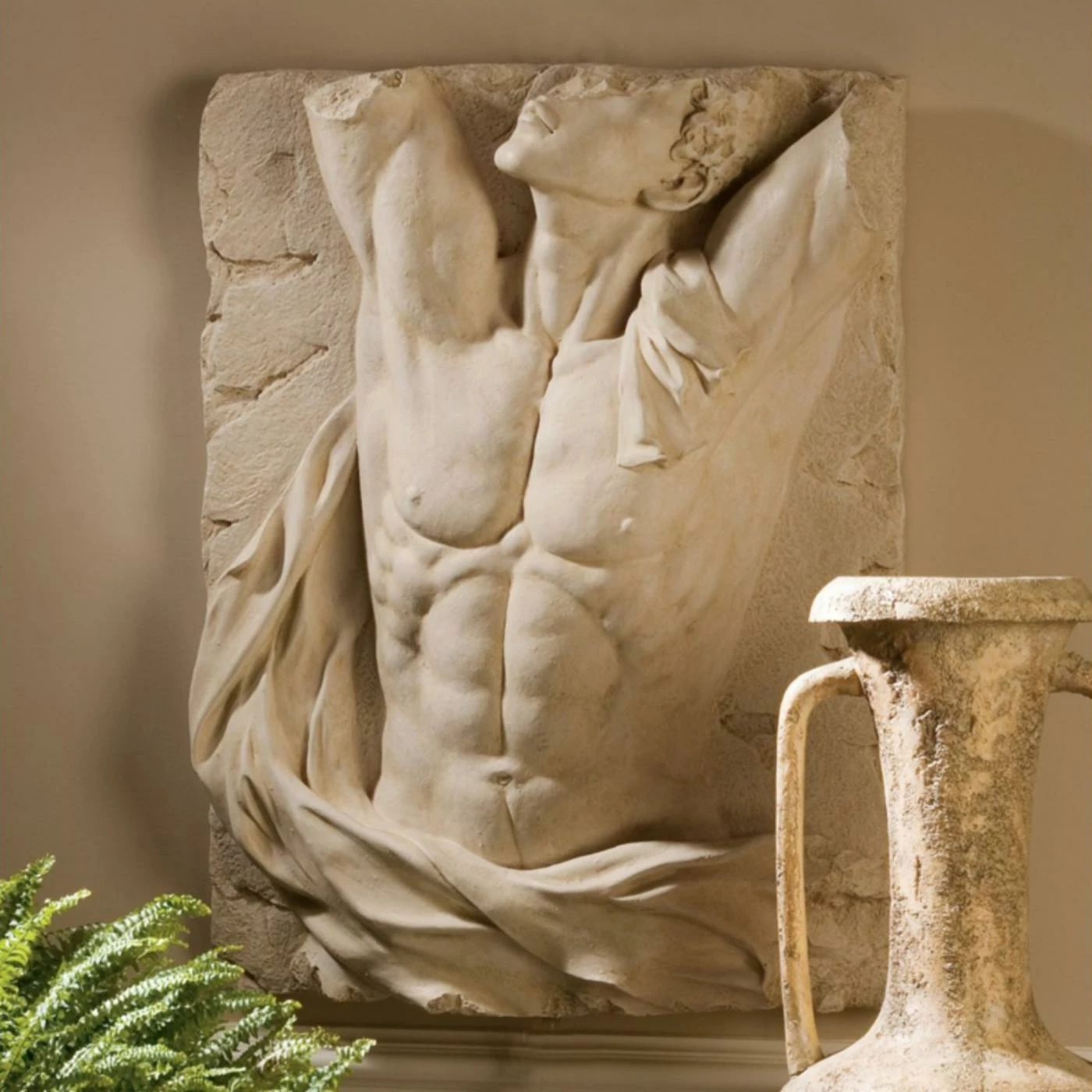 Talk about a handsome man. The legendary perfection of the Greek god Adonis comes to life in the Design Toscano The Torso of Adonis Bas-Relief Wall Decor. With his muscular torso and perfect profile, this Adonis wall decor could nearly be mistaken for an ancient stone-carved original, but itβs actually cast in high-quality resin with an elegant faux stone finish, so itβs lightweight enough to hang on practically any wall.