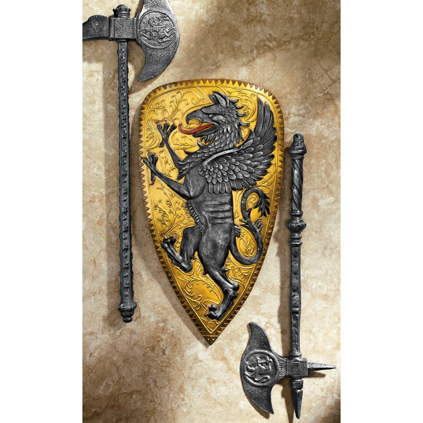 Get in the Medieval spirit with the impressive and imposing Design Toscano Villani Florence Gothic Griffin Shield Wall Sculpture. This hand-painted and unique wall sculpture features a griffin with detailed feathers against a gold shield. It will make a bold statement on any wall.