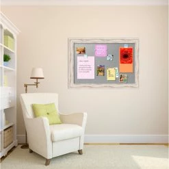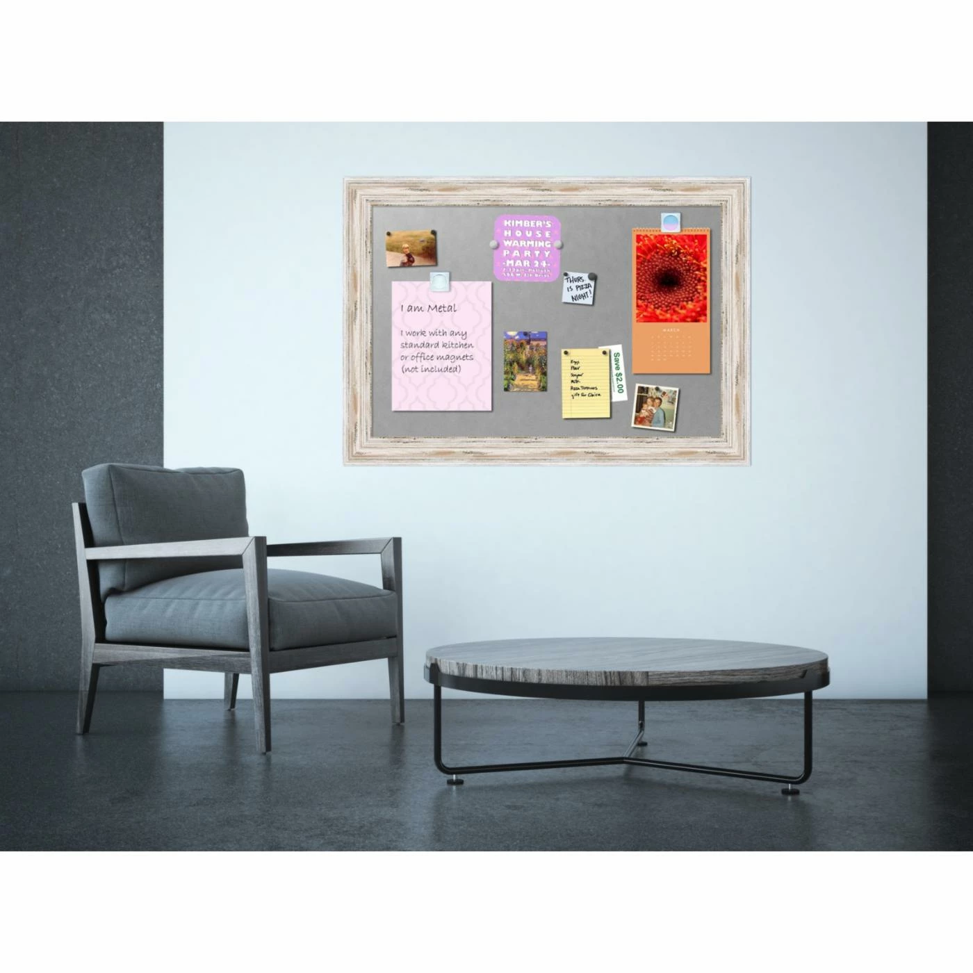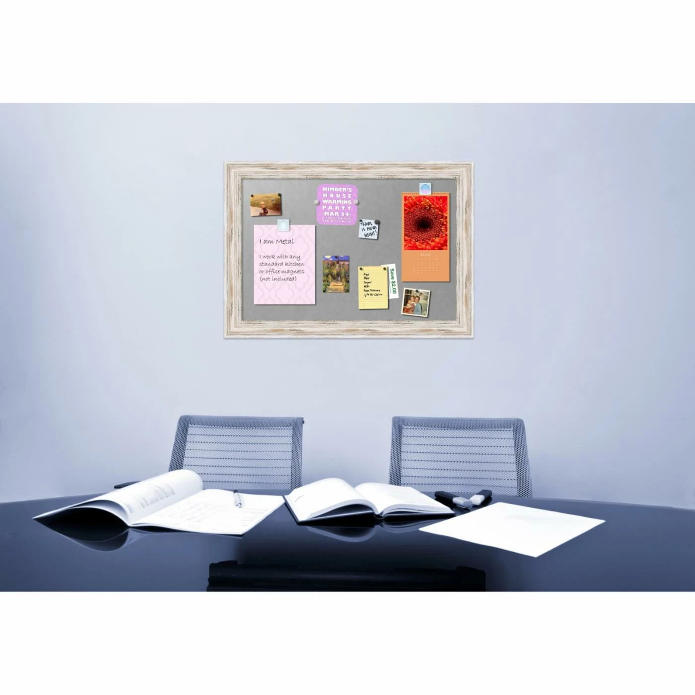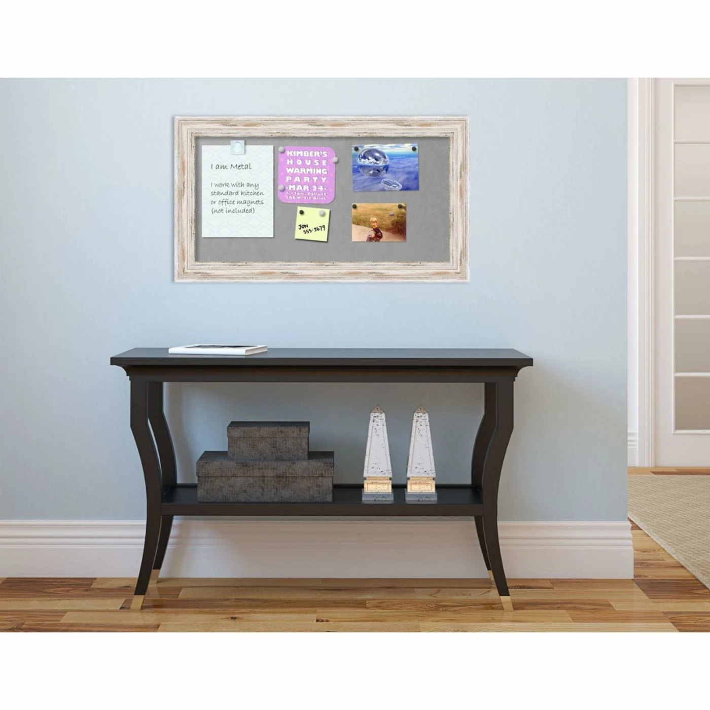 Free up space on the fridge in the kitchen or display photos and reminders in the office with the Amanti Art Alexandria Framed Magnetic Board. This durable, handcrafted board features a magnetic metal center panel that any standard refrigerator magnet will cling to. Framed in whitewashed solid wood molding, the board puts a shabby chic finishing touch on any room. Hardware on the back makes the board ready for vertical or horizontal hanging right out of the box.