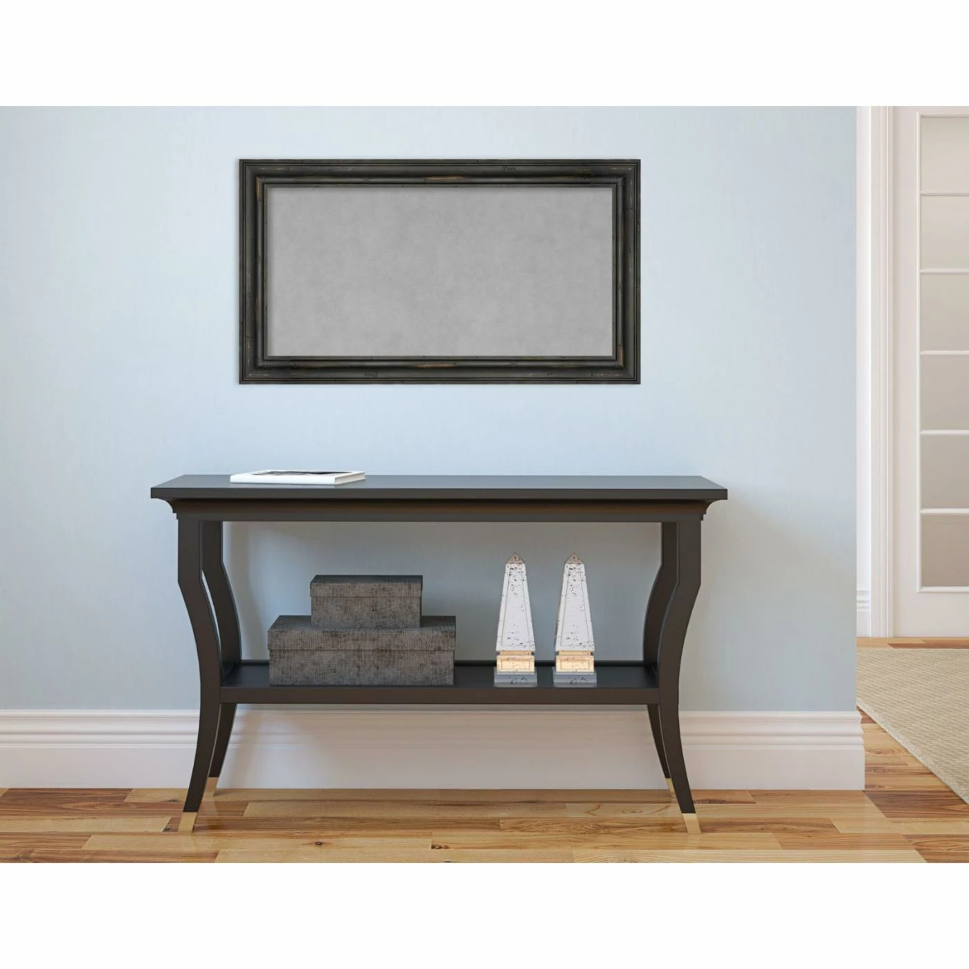 Light natural wood shows through a distressed black finish, ensuring the Amanti Art Black Rustic Pine Narrow Framed Magnetic Board feels right at home in your rustic, shabby chic, or modern farmhouse interior. This solid wood framed magnetic board installs vertically or horizontally and works with any kind of magnet. Choose from available sizes.