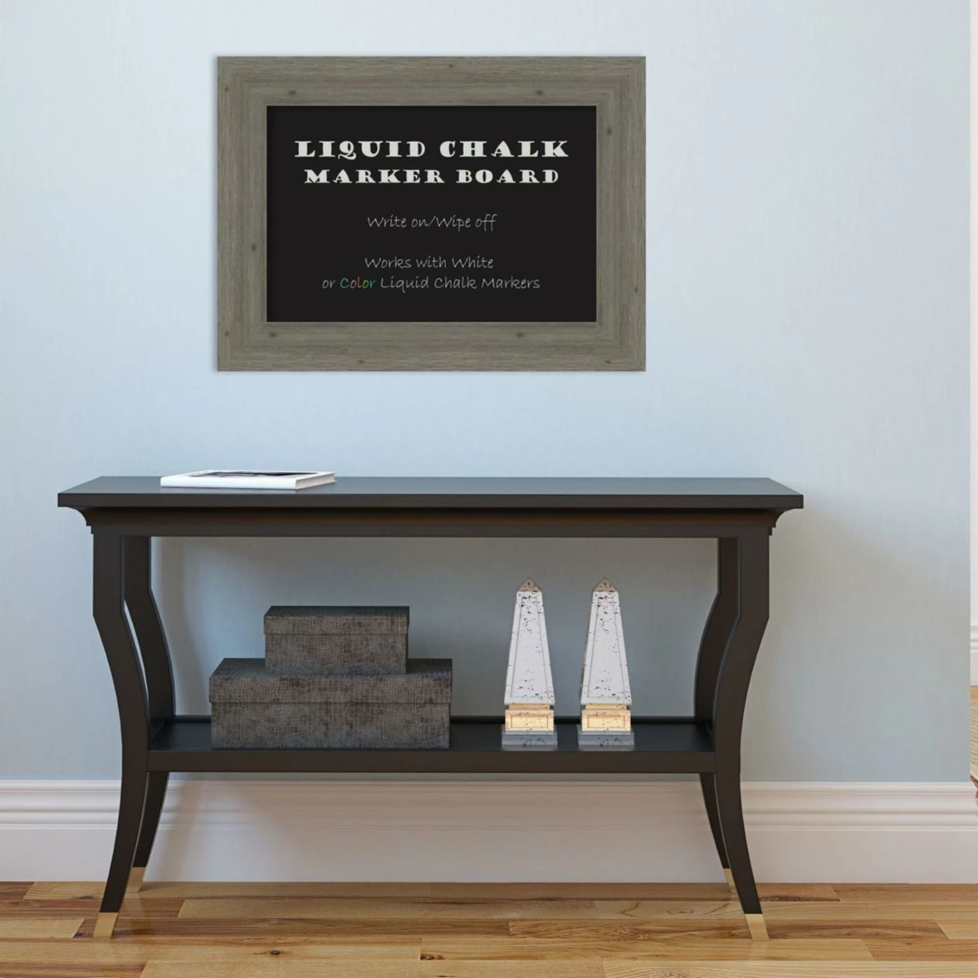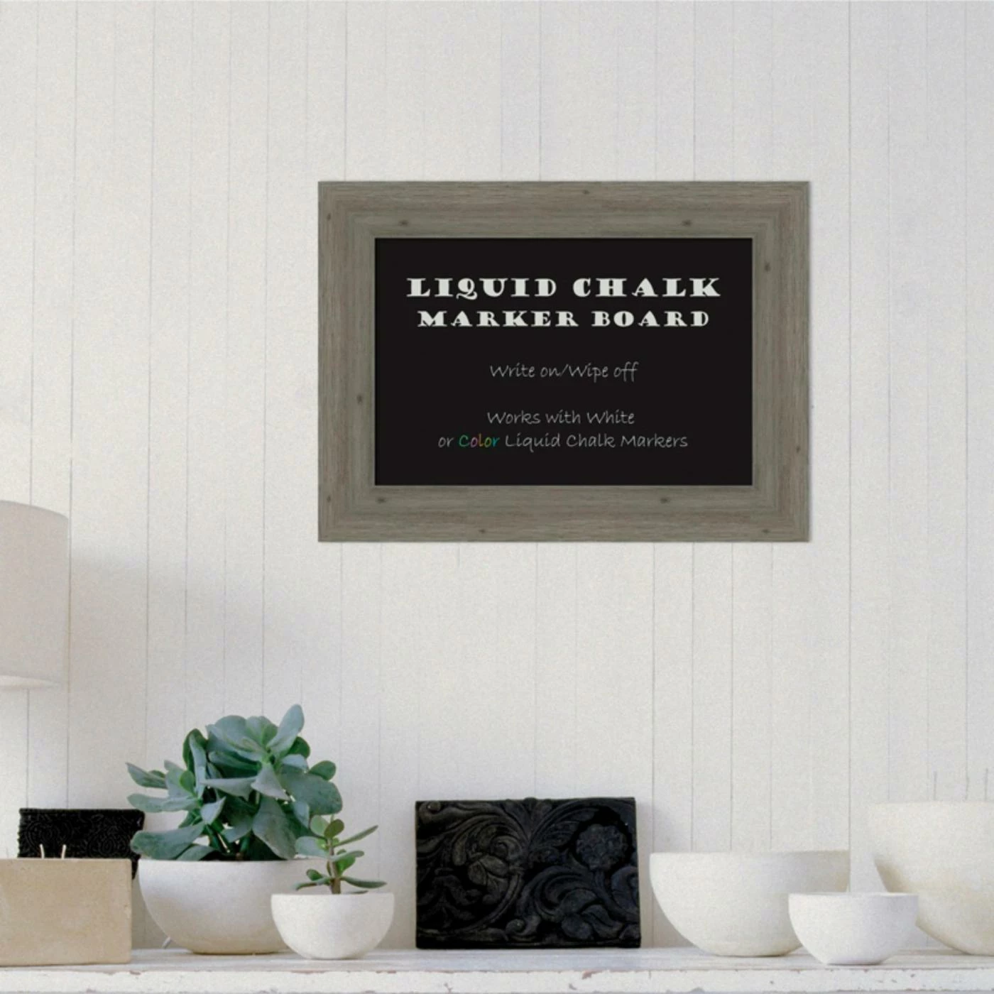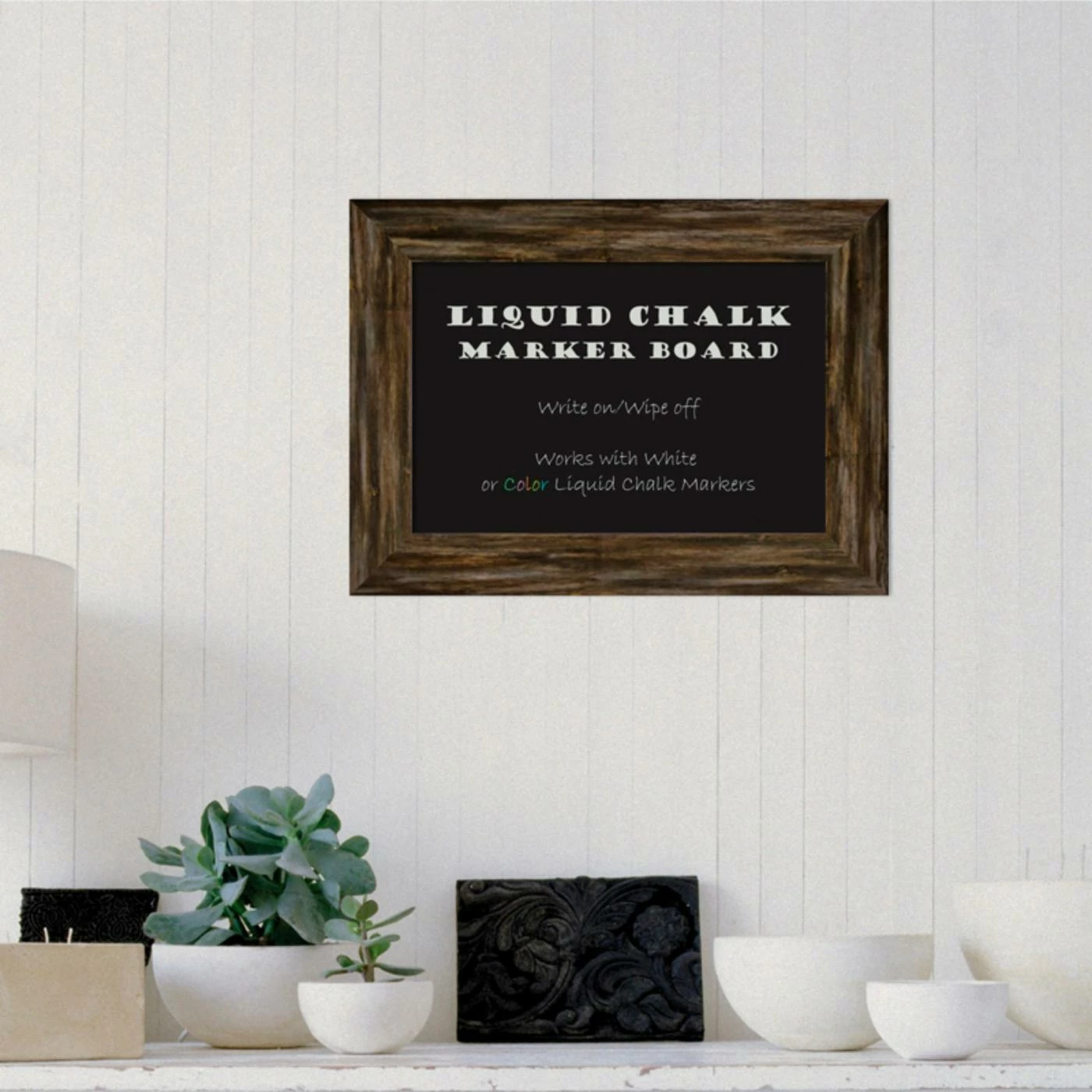 The reclaimed-wood style of the Amanti Art Fence Post Narrow Framed Liquid Chalk Marker Board offers a rustic feel to this writing surface. Enjoy a narrow wood frame that highlights your bold personality however you wish to express it across the smooth glass surface.