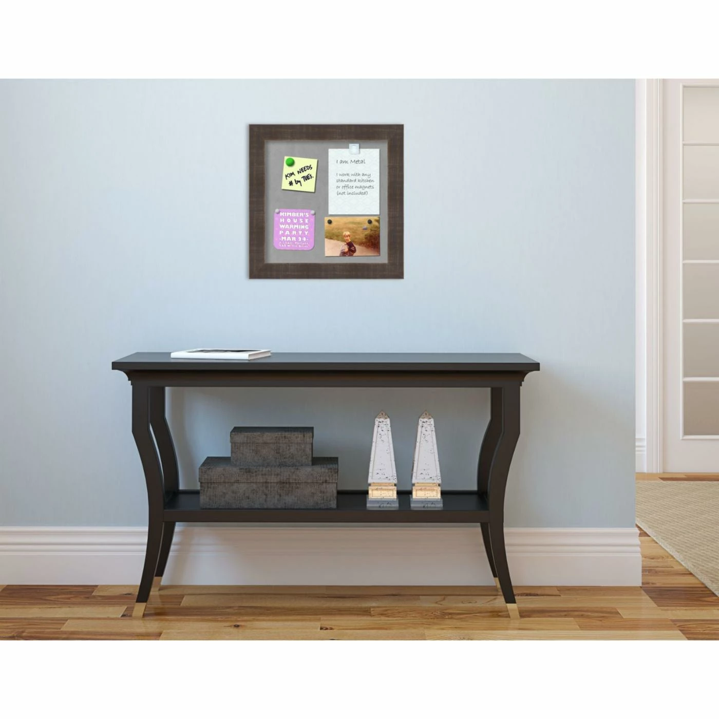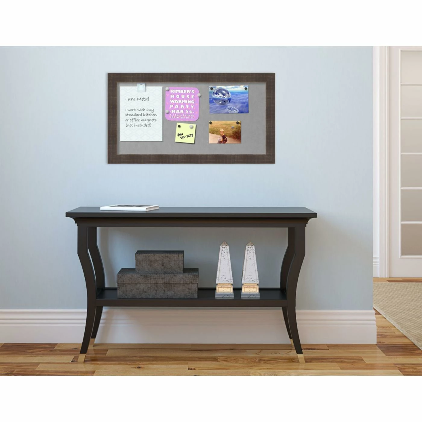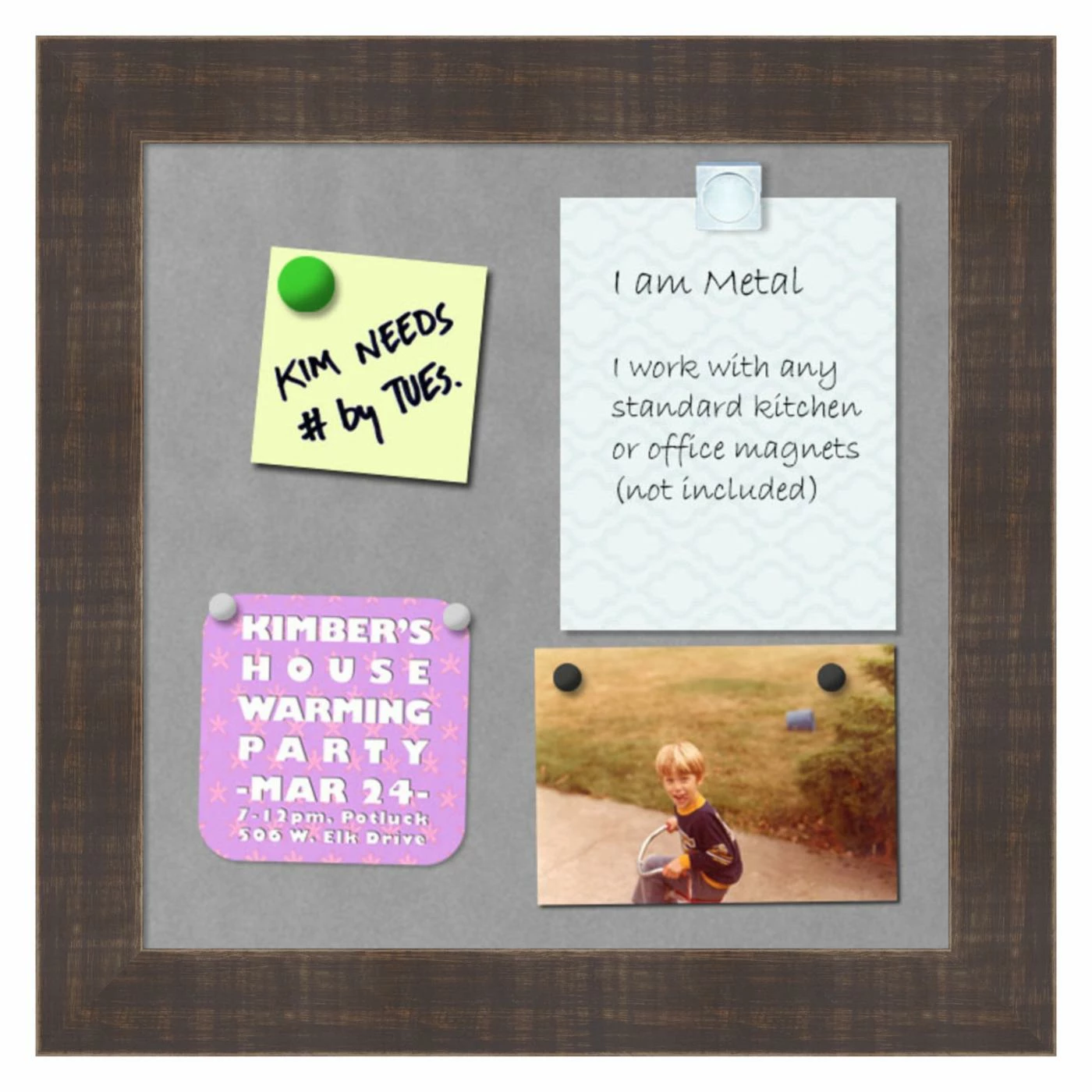 Beautifully weathered with an oh-so natural look, the Amanti Art Whiskey Brown Rustic Framed Magnetic Board brings shabby-chic charm to your dรฉcor. This hand-crafted magnetic board works with standard magnets and is mounted on a solid backing for added durability. The magnetic surface is a combination of aluminum and steel that is covered in a shiny, metallic finish. Hang this board vertically or horizontally for the perfect fit.