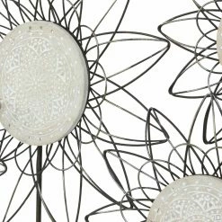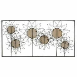 The Aspire Home Accents Whitney Metal Flower Wall Decor will bring the beauty of nature to your space year-round. Its soft color palette of black and beige is an eye-catching combination for a colorful or neutral wall. Each petal and stem is crafted from metal. In the middle of each flower is a wood carving emblazoned with an intricate design. The piece features an antique bronze finish and will work with many decorating styles.