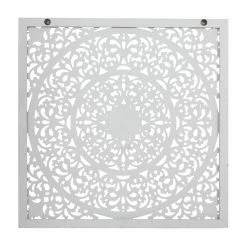 - Square shape with wooden carving design