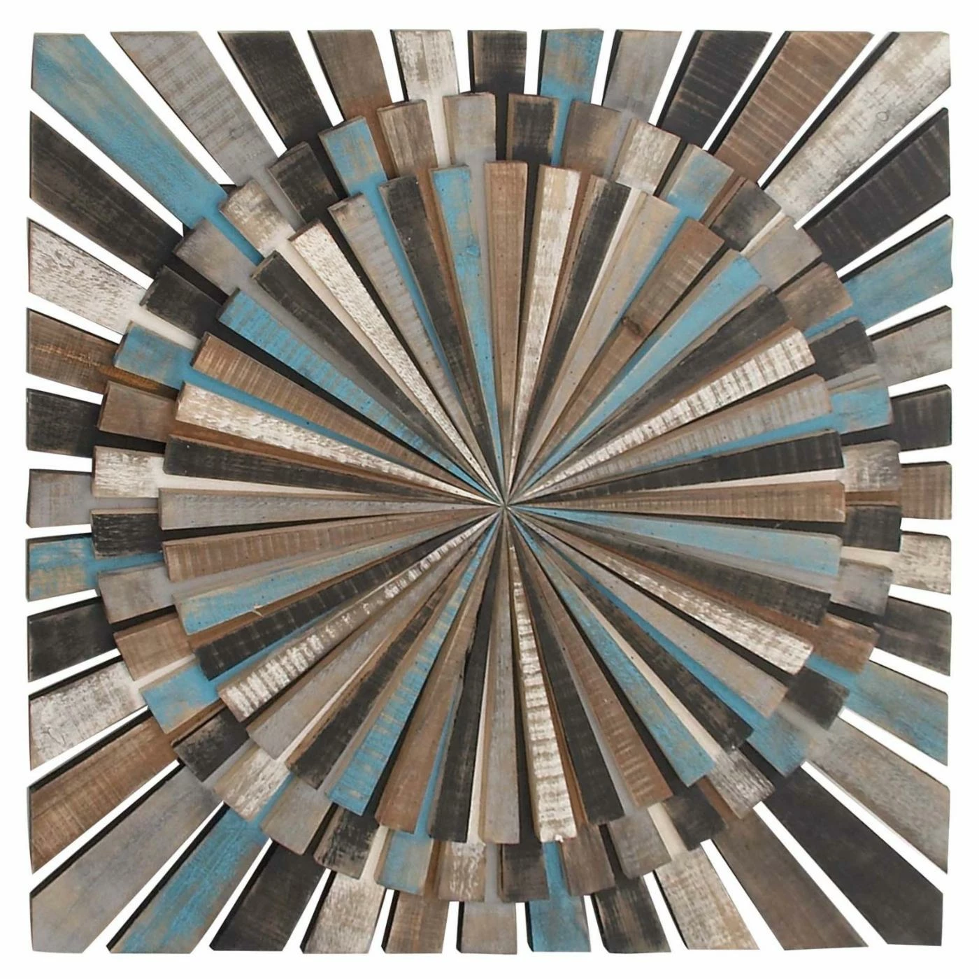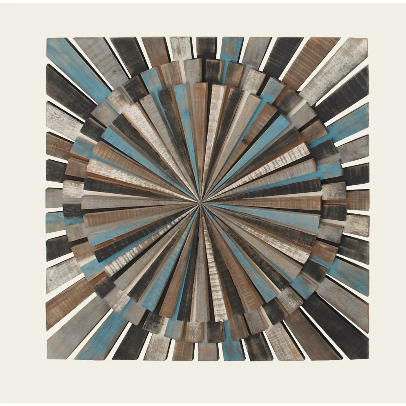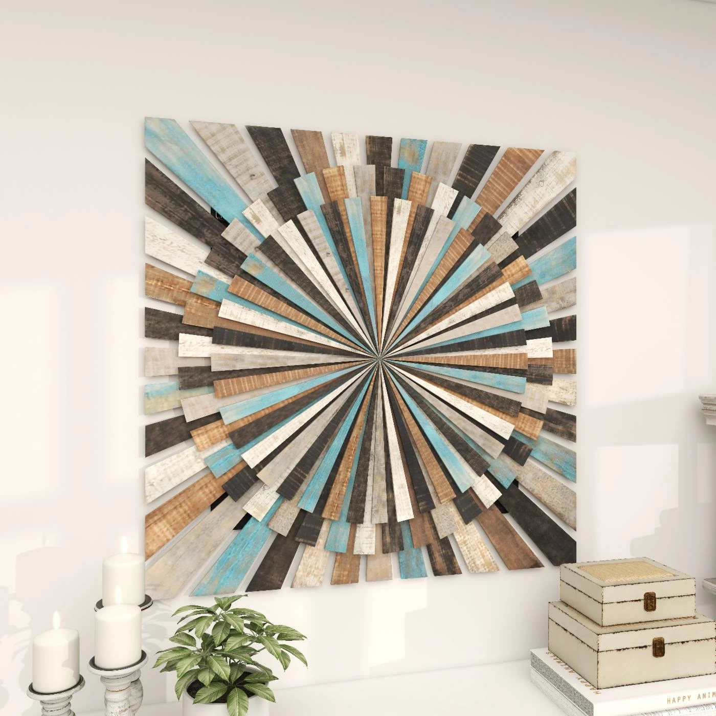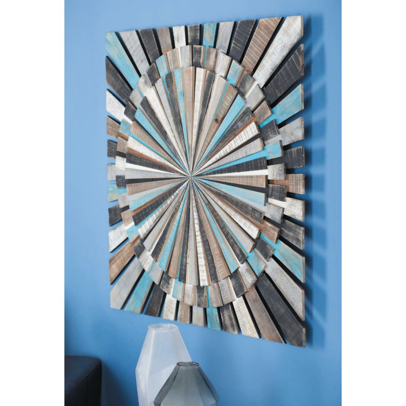 With its weathered blue and brown finish, the DecMode Square Slat Wheel Wall Accent works well with rustic and farmhouse themes. The decorative piece is formed out of layered fir wood spokes mounted on sturdy iron. Ready to hang, this wall accent is simple to display in the kitchen, living room, bedroom, dining room, or hall.