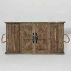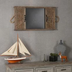 Barn door styling and rope handles lend a heaping helping of rustic charm to the LuxenHome Barndoor Blackboard Wall Decor. This wall decor is crafted from sturdy wood components. It arrives with hanging hardware, allowing you to add it to your living room, breakfast nook, or foyer the moment it arrives.