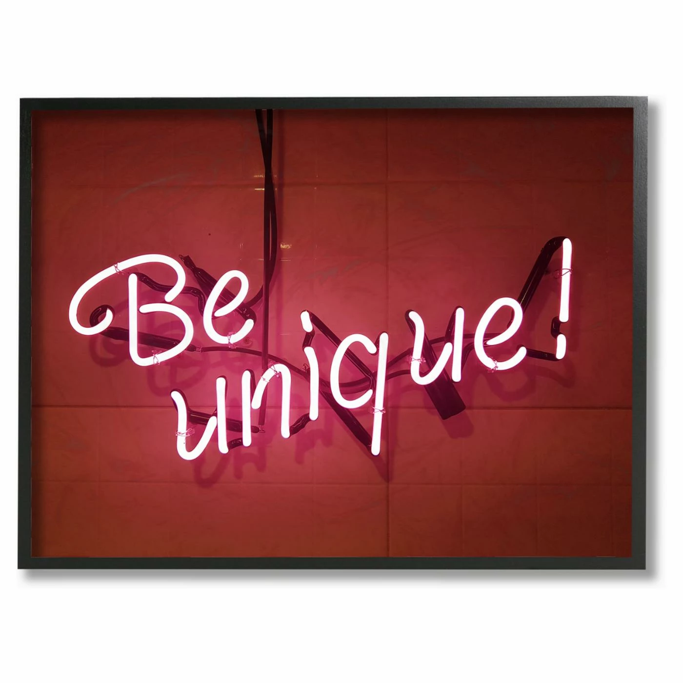 Add these inspirational words and fun photographic image of the The Stupell Home Decor Collection Be Unique Neon Sign Photography Framed Giclee Texturized Art by Daphne Poselli. For added visual appeal, the giclee print is embellished with a textured, acrylic clear coat. The wall art is then framed in engineered wood and outfitted with hardware, so it’s ready to hang upon arrival.